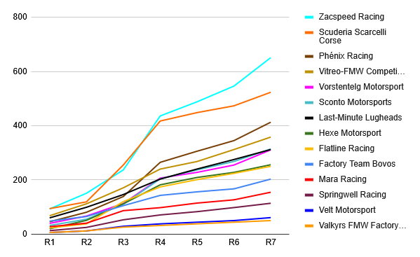 Ruthoantyrth only placed so low in Teams becasue they only had one car. That car was usually top of the midfield and reliable but the points system heavily favoured two car teams. That was by design but it might change next time. Still it took 5th in Drivers and won the Privateer Cup so pretty good performance.