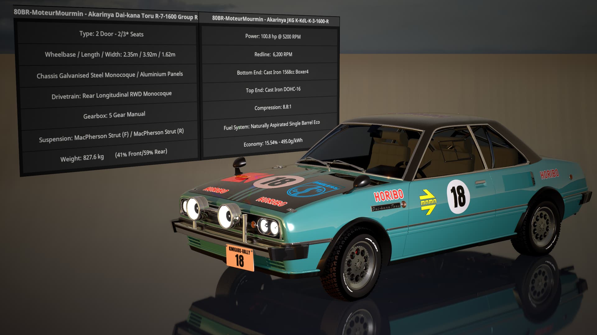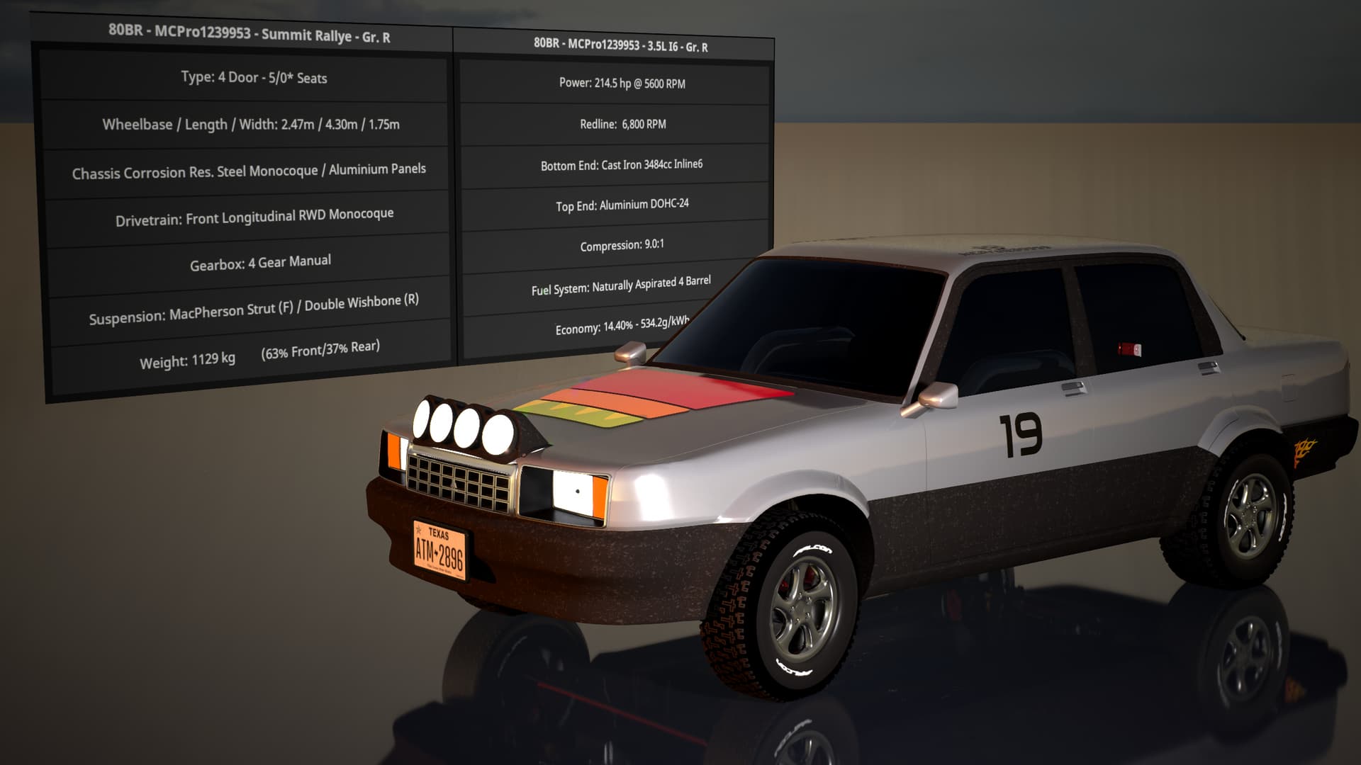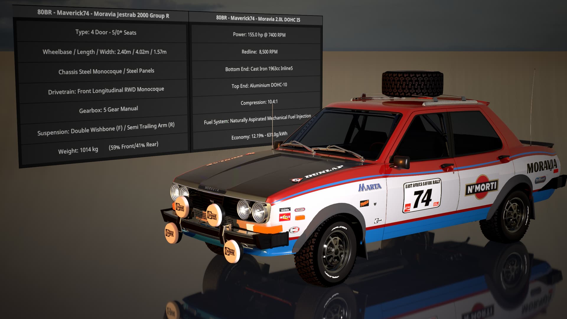 For Group R, we are entering a Moravia Jestrab 2000. This Czechoslovakia family sedan is powered by a DOHC inline five punched out to two litres. Mated to a five speed transmission, rear wheel drive, and indipendent suspension, it should be a rugged contender.