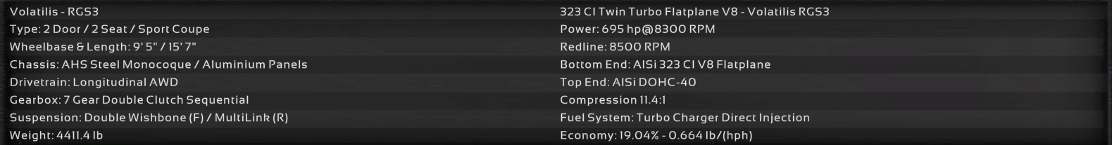 RGS3 (Engine: 5.3 L Twin Turbo Flatplane V8)