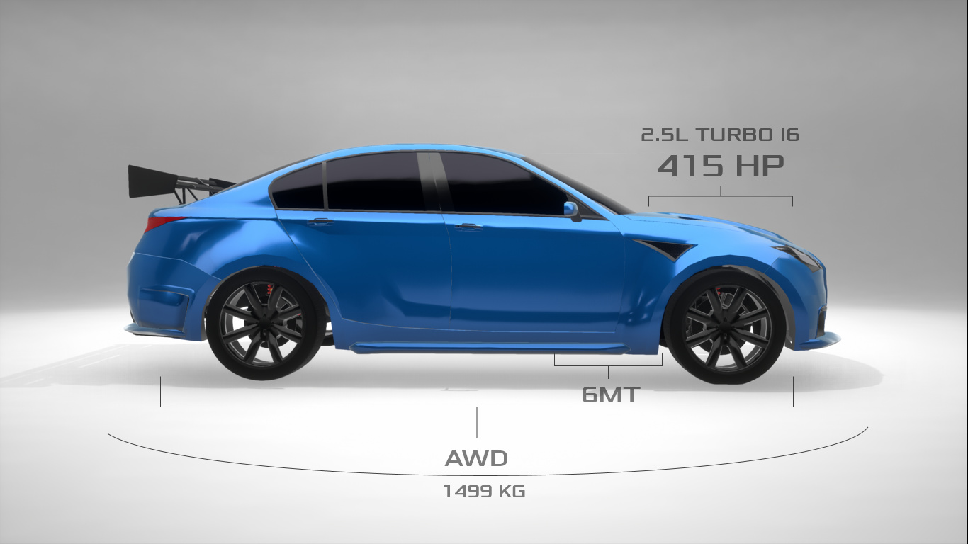We will offer it in two trims, the first being the EC trim, with a 1.8 liter 4 cylinder engine, making 130hp sent to all four wheels in an AWD configuration, while still getting 42 MPG. This one doesn’t include the wing and lip shown above.