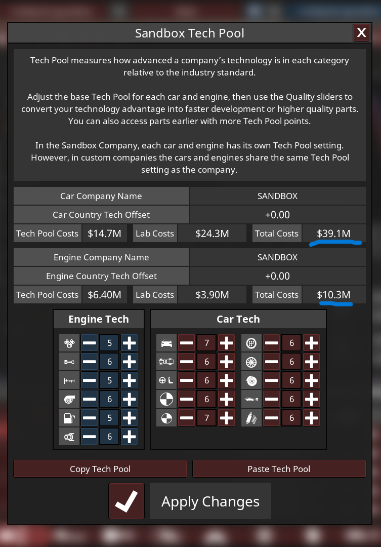 The combined techpool are these underlined costs added together, so in this example it would be 39.1 + 10.3. So this car has a combined techpool of 49.4M