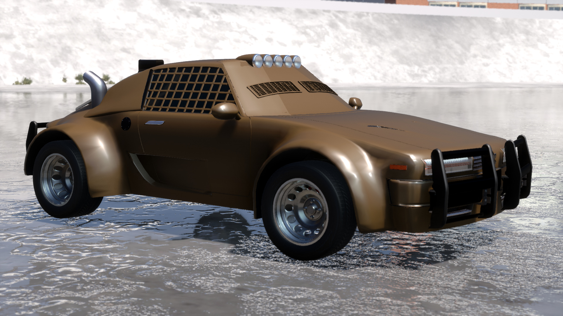 …Rebuilt for war with heavy armor, a remote-controlled chaingun turret, and quad shotguns on the hood… Among a few other modifications.