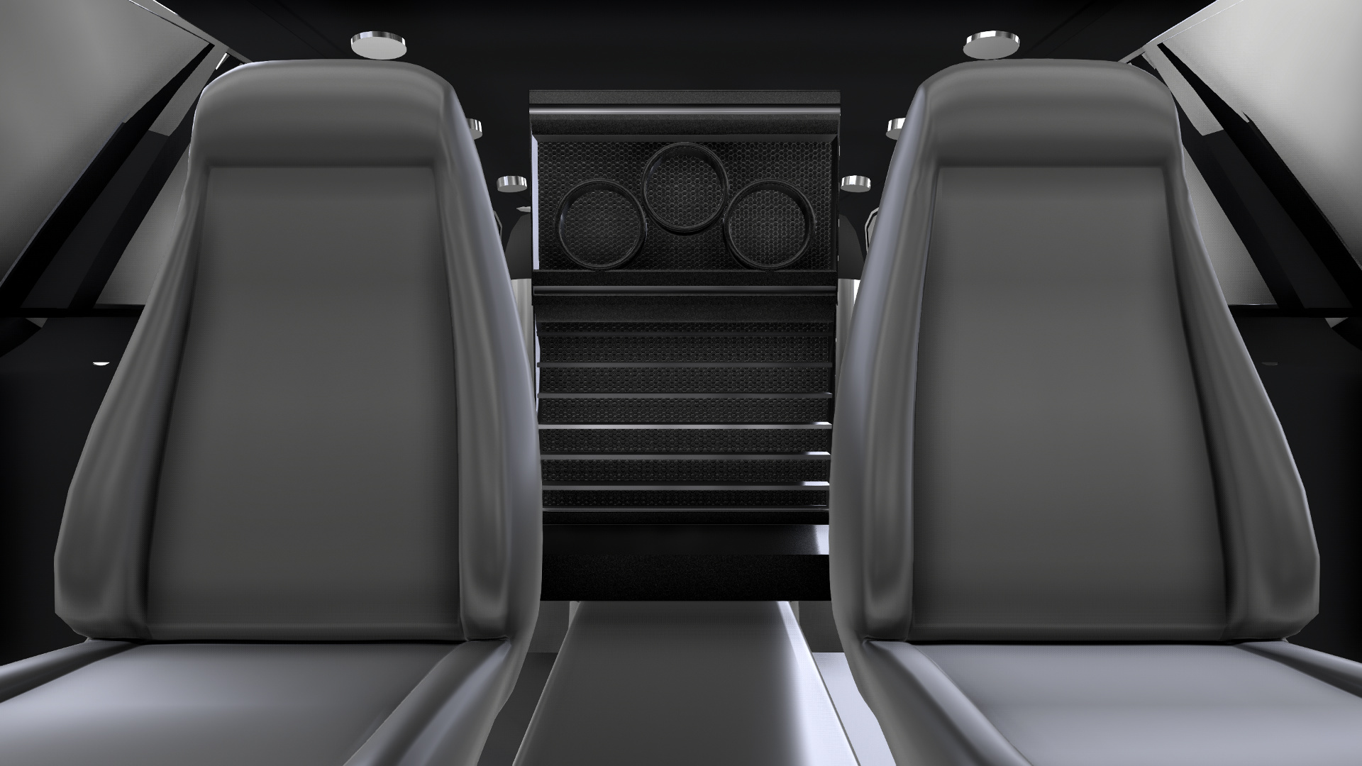 For defense from vehicles behind him, there are dual .50 caliber machine guns, as well as two heavy steel tombstones, one behind the rear window, one before the rear seats, as well as the rear bash-plow to keep other vehicles from just rolling him over.