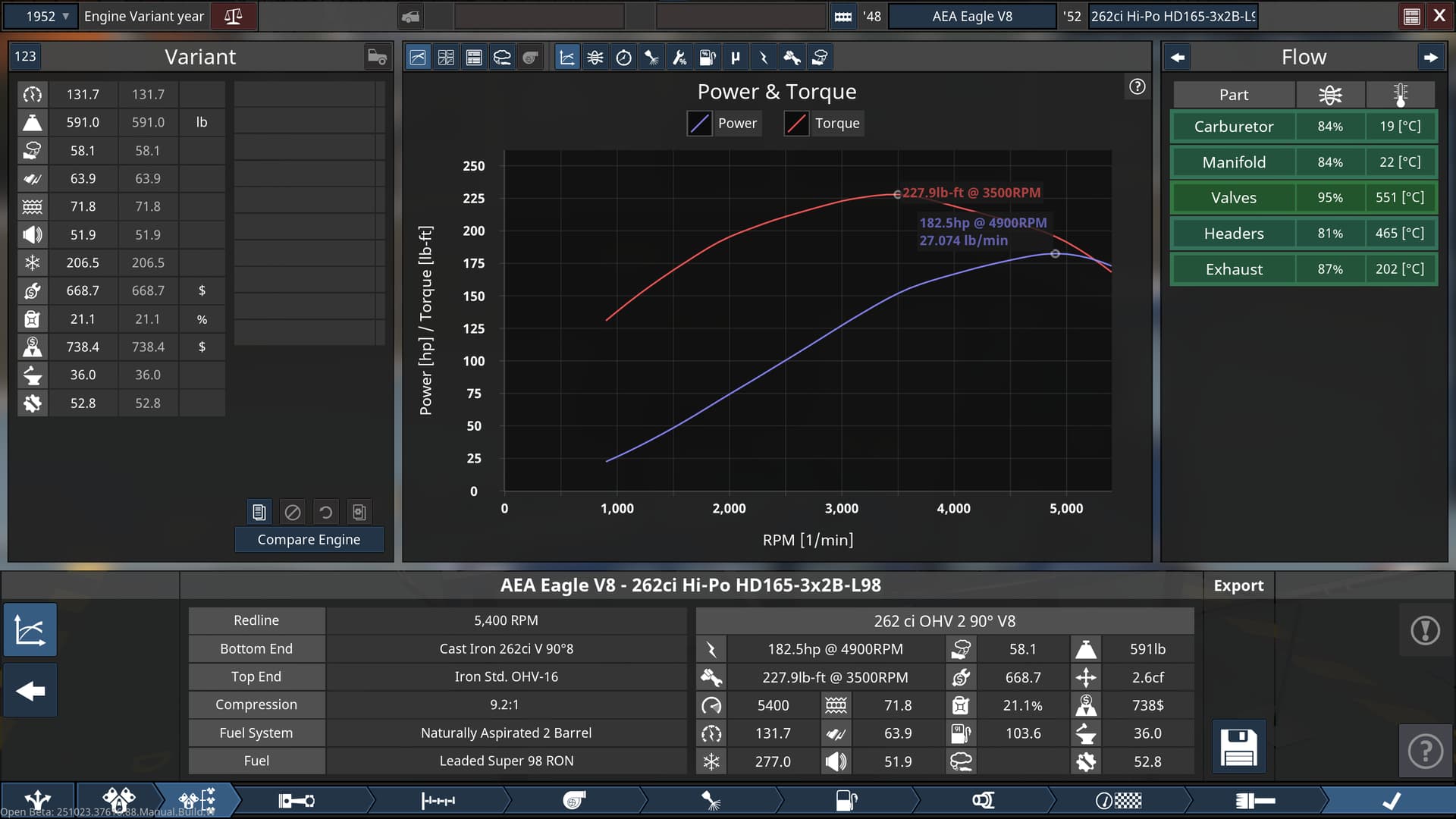 Smith: “Welp, this is dissapointing! It’s only making 250hp, and that’s at the redline, 5900 rpm! On top of that, the AF Mixture is dead lean at 15.0”