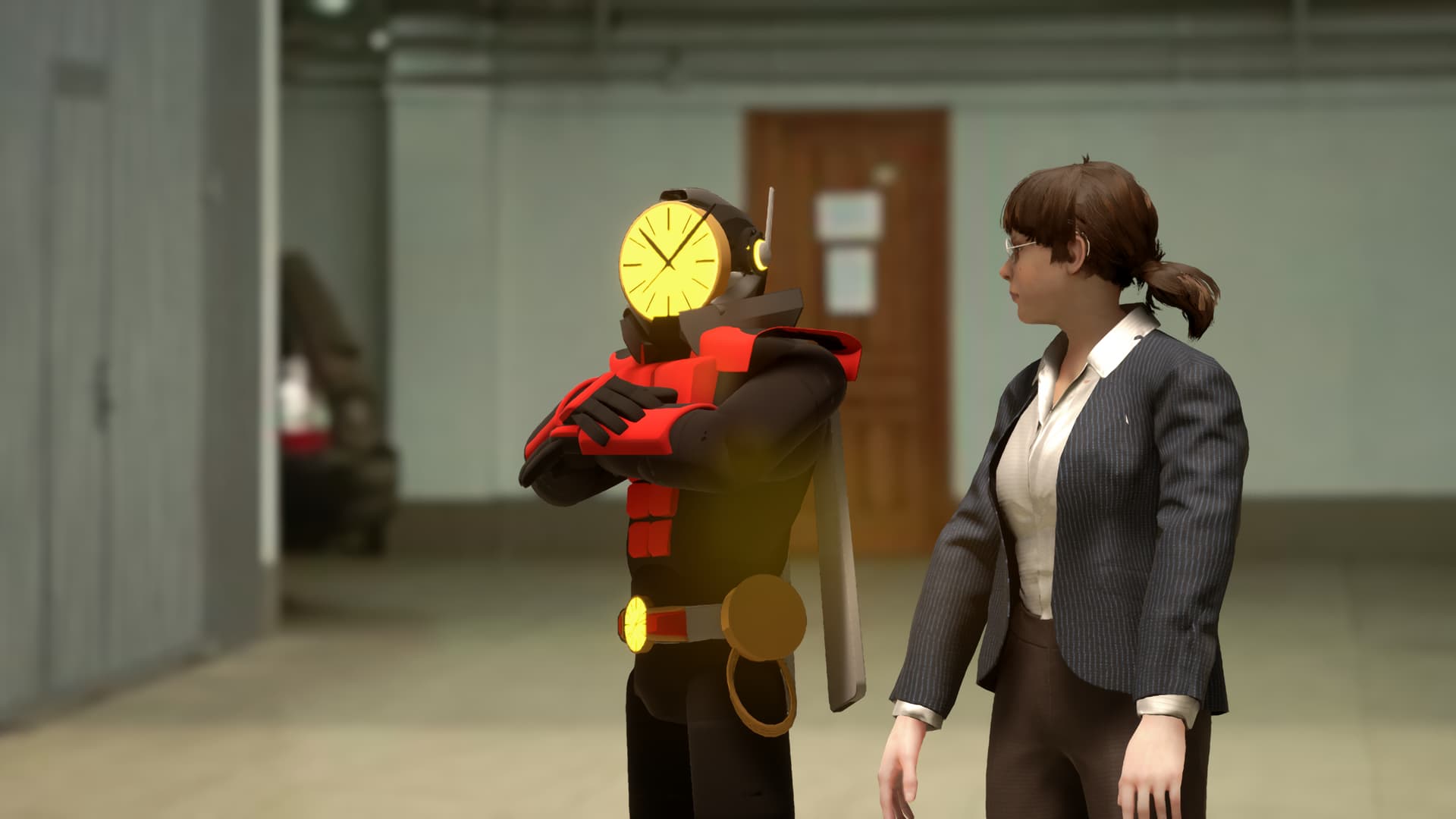 Enter Goji Yukata. A happy-go-lucky former journalist, arrested for “interfering with government business” (read: sniffing around too much on the AutoUnits’ ethical issues) and converted into a Unit. Having escaped the lab, he goes by the name the people gave him, “the Clock Warrior.” With the help of Miho, his childhood friend and mechanic, he’s determined to uncover the company’s true intentions, have them punished for their crimes, and clear his name.