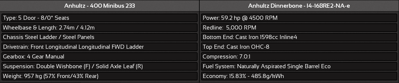 In june, engineers at Anhultz started developing a new vehicle planned to serve as a medium-duty delivery van. It will use our newly made 800cc engine and will carry 1.5 tons of cargo. It will be available for purchase in October of 1949.