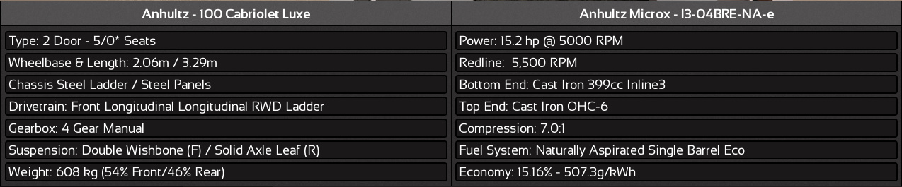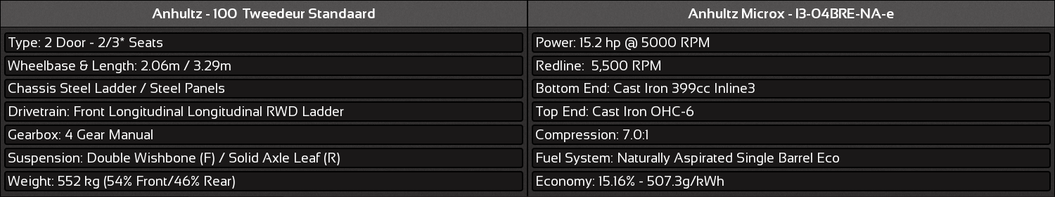 The release year of the Anhultz 801 was a great success which gave Anhultz the money and time to engineer a new range of engines for further vehicle production.