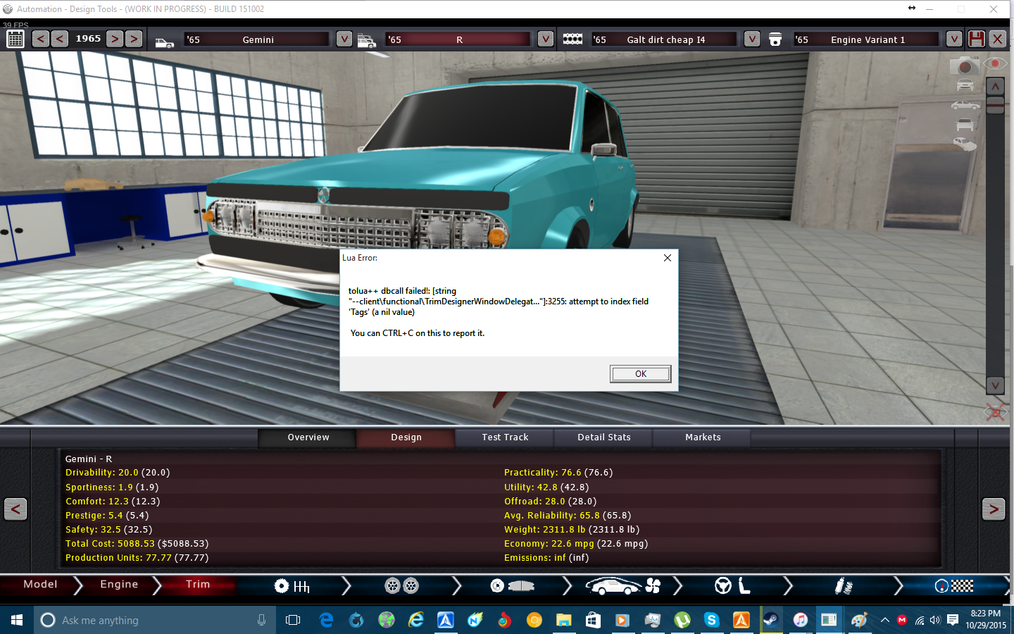so i get this whenever i click on the design tab of this car, and nothing shows up in the box, i also get this error in the markets screen but it has no issues