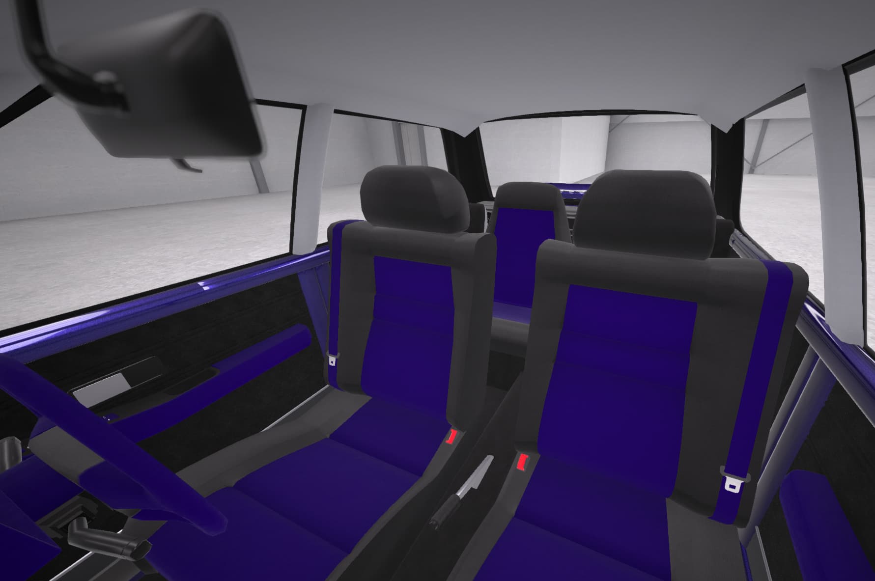 The seats have been replaced with new more supportive front seats, and what appears to be individual racing seats in the rear. Following the same very bright colour scheme as the exterior. There is a screen based infotainment unit in the dashboard which is a good nod to modernity, the stock hvac is a bit of a let down. The only car here to add arm rests to the door which is a very nice quality of life improvement.
