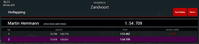 As promised the 1:54.high. A bit more is still possible if you look at the sector times and me screwing up some brake points, especially at the chicane.