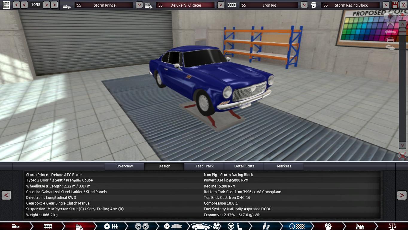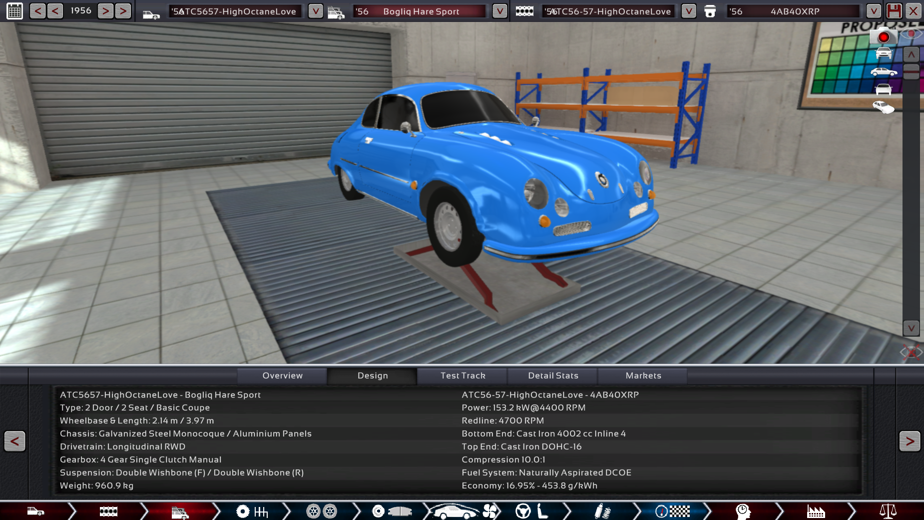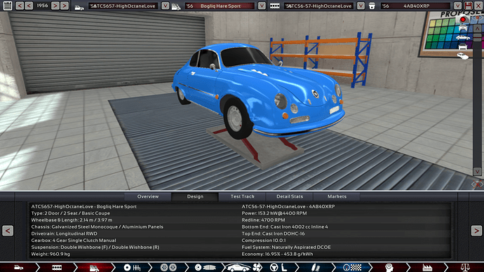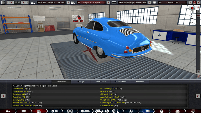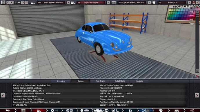 The Bogliq is beautiful and almost an economy car regarding the mileage. I actually forgot that August has 31 days instead of 30 - so you have even still 3 days to test anything. Well, except for Storm (I do not find anything to improve and that car goes like hell) and me, I even finished my 1958 car yesterday.