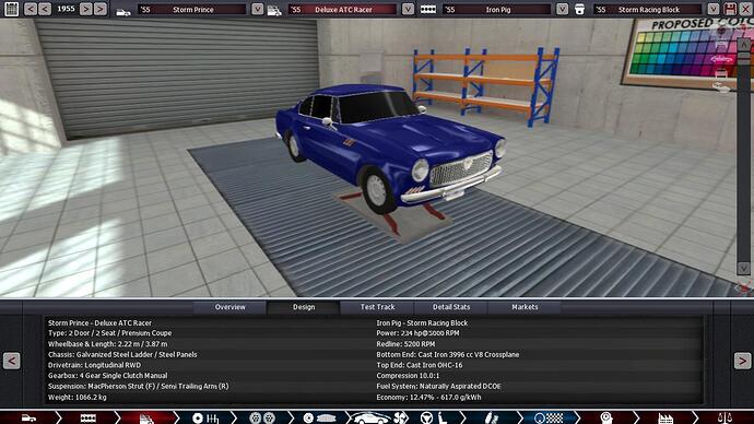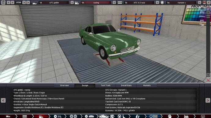 Decided to make a second car just for the fun of it and now I’m much less confident on the handling of the gremlin. I was able to make a car with more power(slower straight line speed though), better brakes, and can do 1 G in the corners.