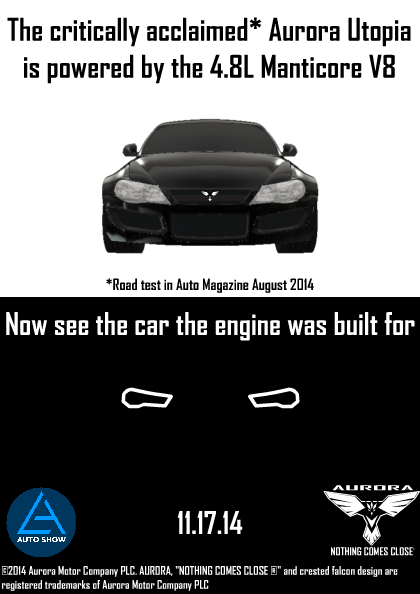 Presenting the Aurora Manticore, powered by a 4.8L naturally aspirated V8 that redlines at a 8000. Competitors include the Aston Martin V8 Vantage, Lexus LFA. Priced starting from $99,999, it is price competitive with the Aston (although the interior of the Aston is better). Options include carbon ceramic brakes for $16,000. Comes with Aurora’s Industry leading 10 year/160,000km new car warranty and 15 year/200,000km powertrain warranty (warranties are non transferable!)