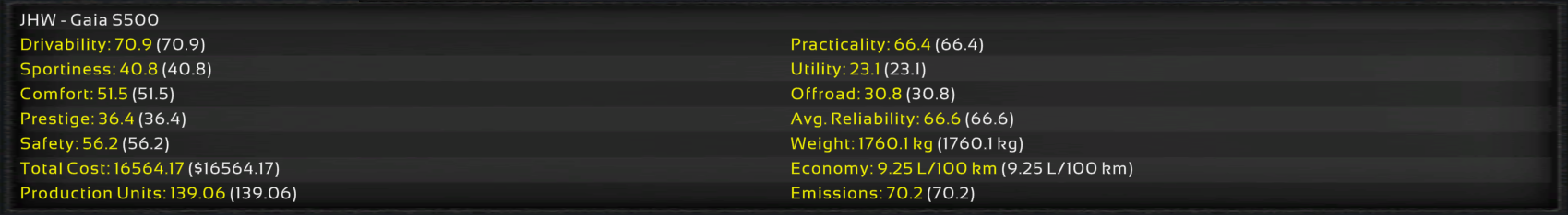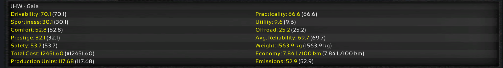 The Gaia is our take on a “Compact Executive” car, and we aim to bring this to market with a projected price of $28,980.