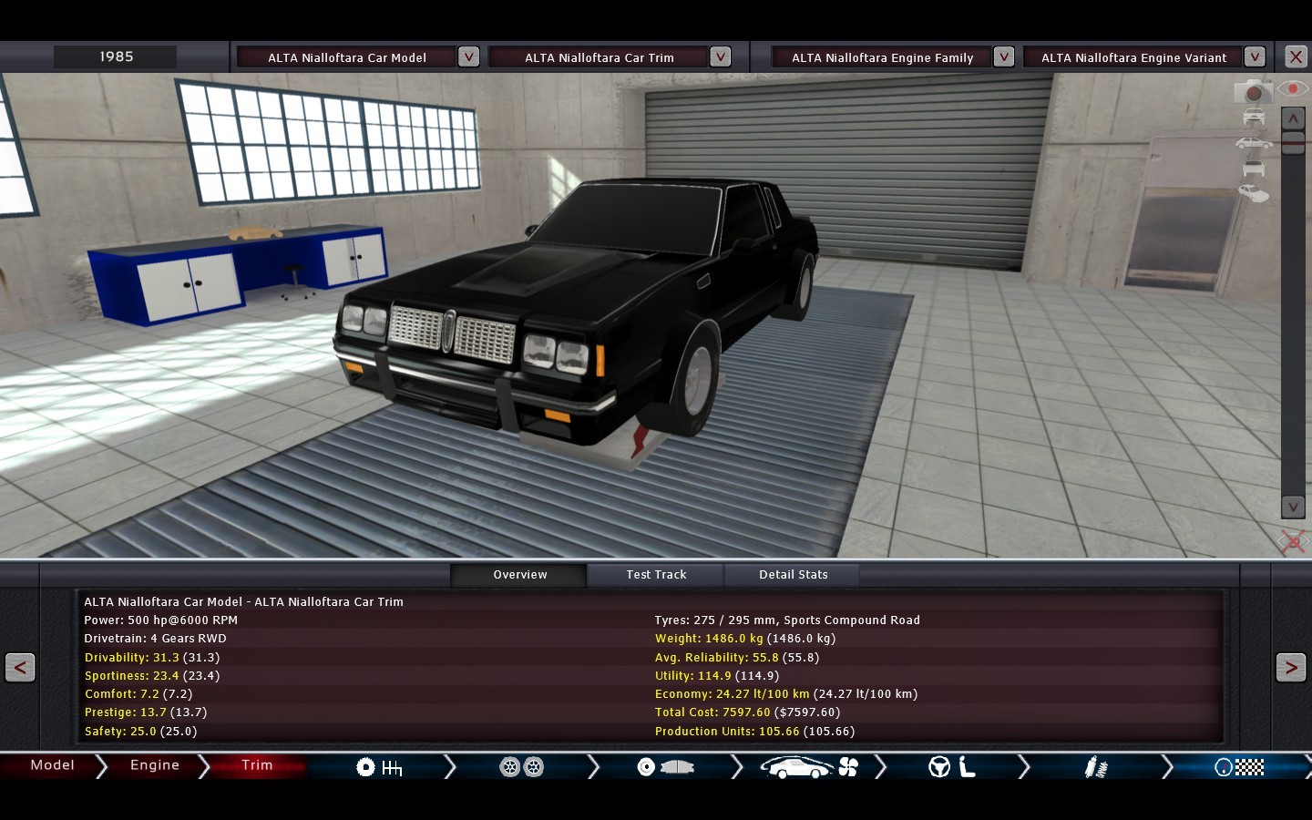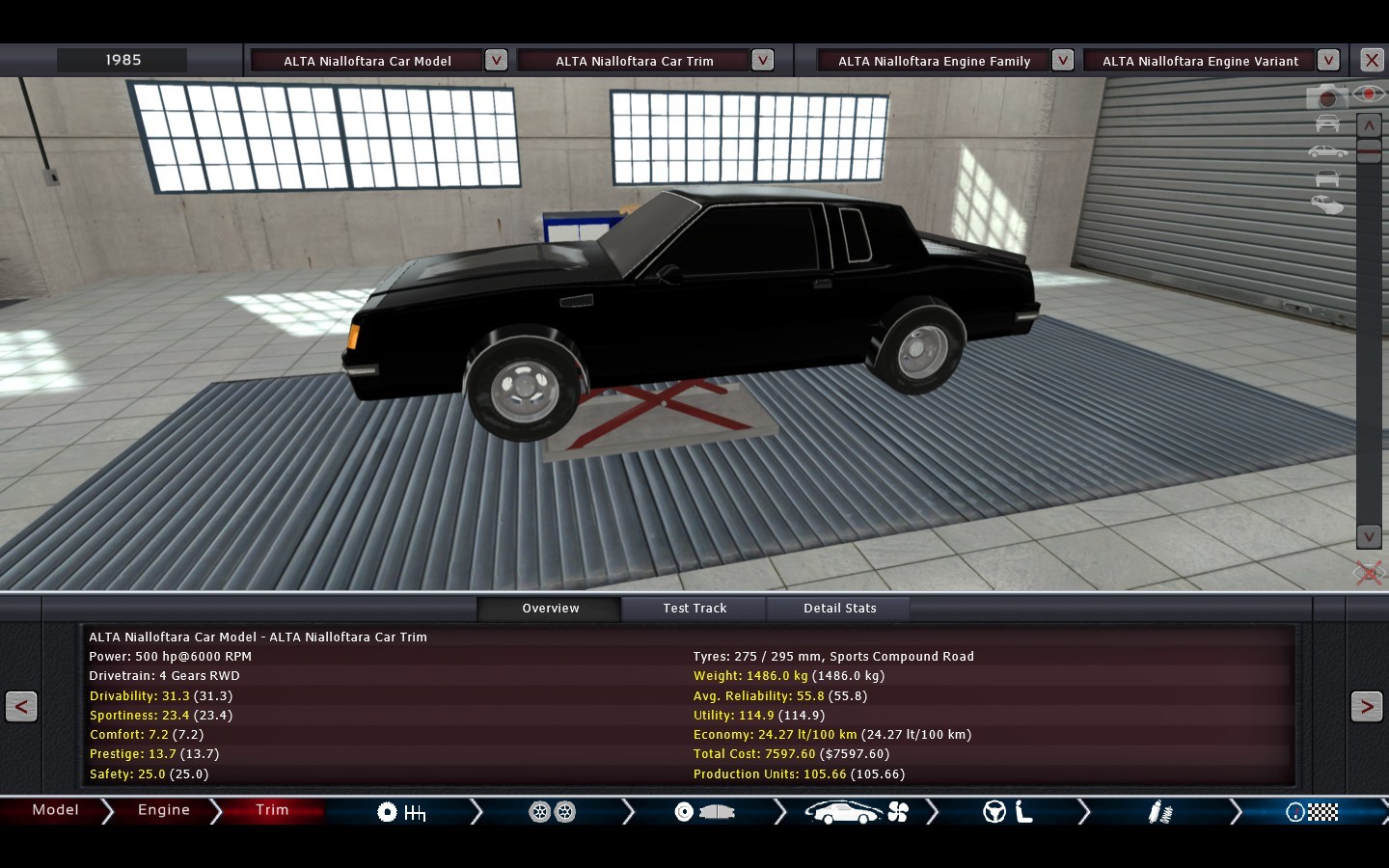 This is the first car ever produced by SME. The 1982 Alpha RS 302. Of course, it’s not in it’s factory form, as it is more than 30 years old! Powered by 302 cubic inches of American V8 pushrod glory (aren’t all SME cars?), and converted to run high-octane leaded fuel, this car is loud, obnoxious, and dirty as F**K. In the spirit of the Centari Knight from nialloftara, this American Pony Car should be super fun to watch!