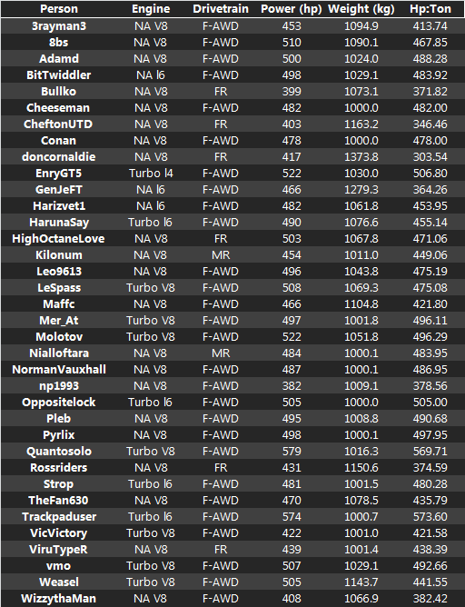 For the tires, make sure to the run the best tires that are permitted, and if there is a maximum quality, you should be running that tire quality.