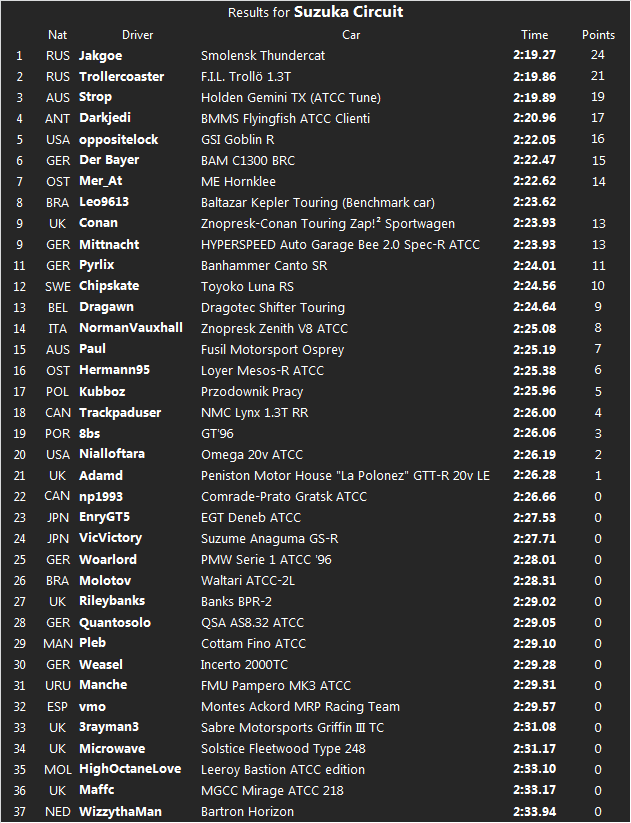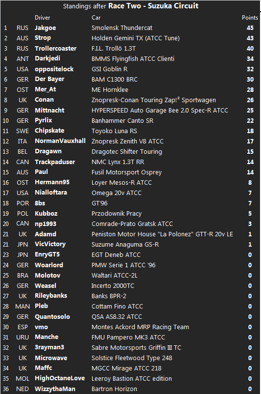 The power and weight charts will be released once I get back home, as will the new championship standings.