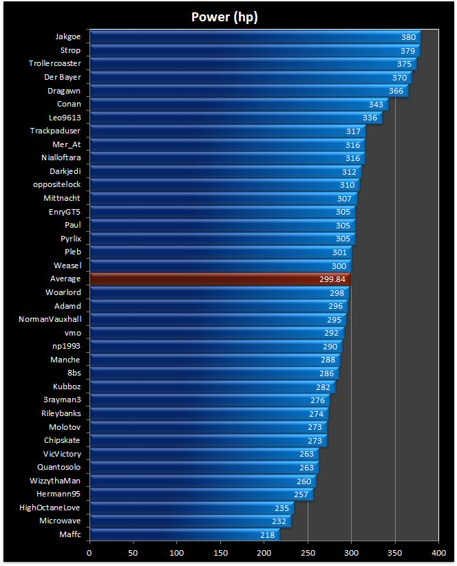 Looks like at least my set up is not too bad but my engine is pretty bad… 42hp below average and 123hp below top…
