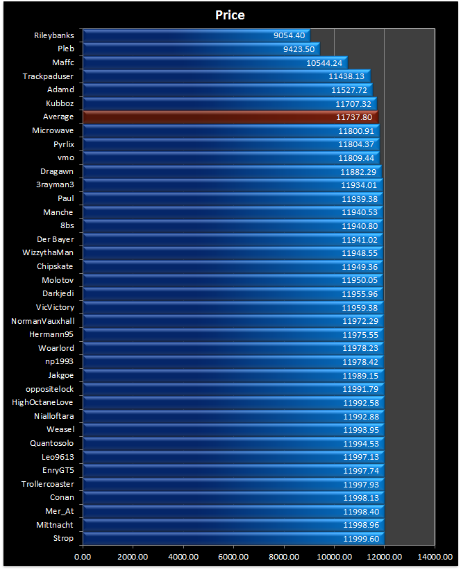 This time we are comparing the price, this hasn’t got a direct relation with the cars performance, but it can show how much time has been spent on tweaking.