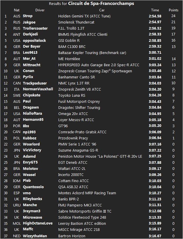 Yep, I can confirm I spent straight up 4 hours (over three days) on the tuning of this car. I specifically wanted to build a Holden Gemini with the highest power to weight ratio, but seeing the competition, I also wanted to see how good I could make it! So far so good but incredibly tight contest!