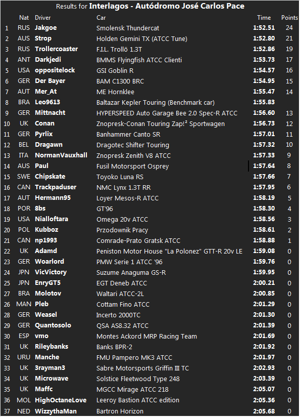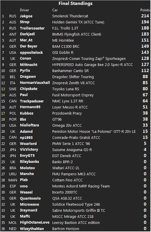 And on the first day of the year, I bring you the results of the last race on this season of the ATCC.