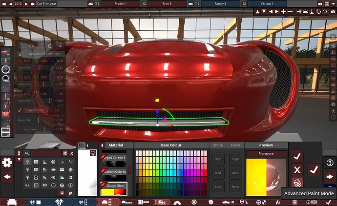 Once the desired lighting material is selected, you will now choose the desired lighting color using Advanced Paint Mode. For this tutorial, I am setting the Base Color (Light Status On) to Red, and the Unlit Color (Light Status Off) to White. Ensure that you click on Finish Editing Paint in order to save your modifications.