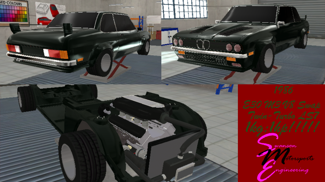 We are proud to present the most extreme prototype we ever built, it’s the ultimate expression of the average 1990 Seishido Achernar, we worked on it for weeks over weeks, to make it reach this levels of insanity. Here it is, the EGT Achernar X90. Under the carbon bonnet lies a modern 8.1 liter behemoth V8, making 1220HP, way more than enough to carry a 1074KG weight around a racetrack, with a power to weight ratio of 1,13HP/KG, enabling this monstrosity to reach 100KM/H in 2.5 seconds and have a top speed of 380KM/H, of course the bodyshell has it’s limits (Read: Tyres) so it won’t be the fastest around technical tracks, but give this box a straight and it will eat you for breakfast, or blind you with 90’s nostalgia unicorn power. We ensure you that the X90 is perfectly legal, with working everything and CHROME DOOR HANDLES.