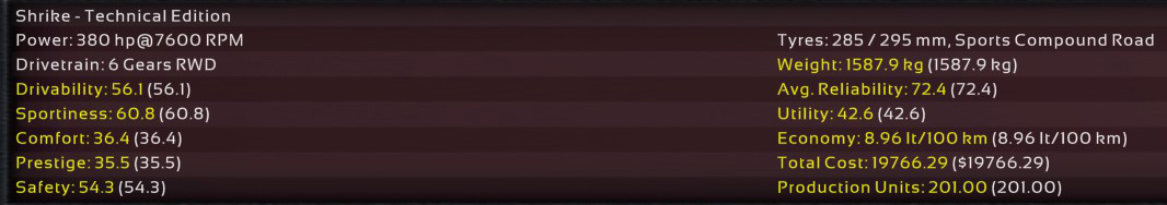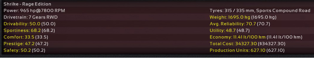 3rd Incident: 2nd Prototype, same engine as the Emden Rage, uprated to 690hp @ 8000rpm on Octane 98 fuel. Brought out to the test track for a test run.