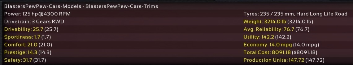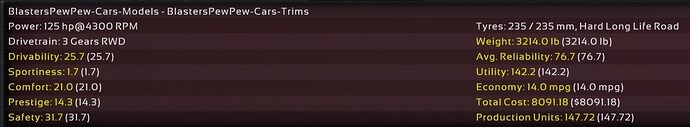 The majority of my costs come from tech points in the chassis/frame/body to up its environmental resistance (as was true for the real F-100), also some in the engine to increase durability(the Ford 300/4.9 is damned tough). I was trying to make as close to a true “half-ton” truck as I could, most true half-tons in the '70s were rarely over 350ci (5.7L), the F150 is a “heavy” half-ton in this era and that would have been out of the scope of what I wanted to build.