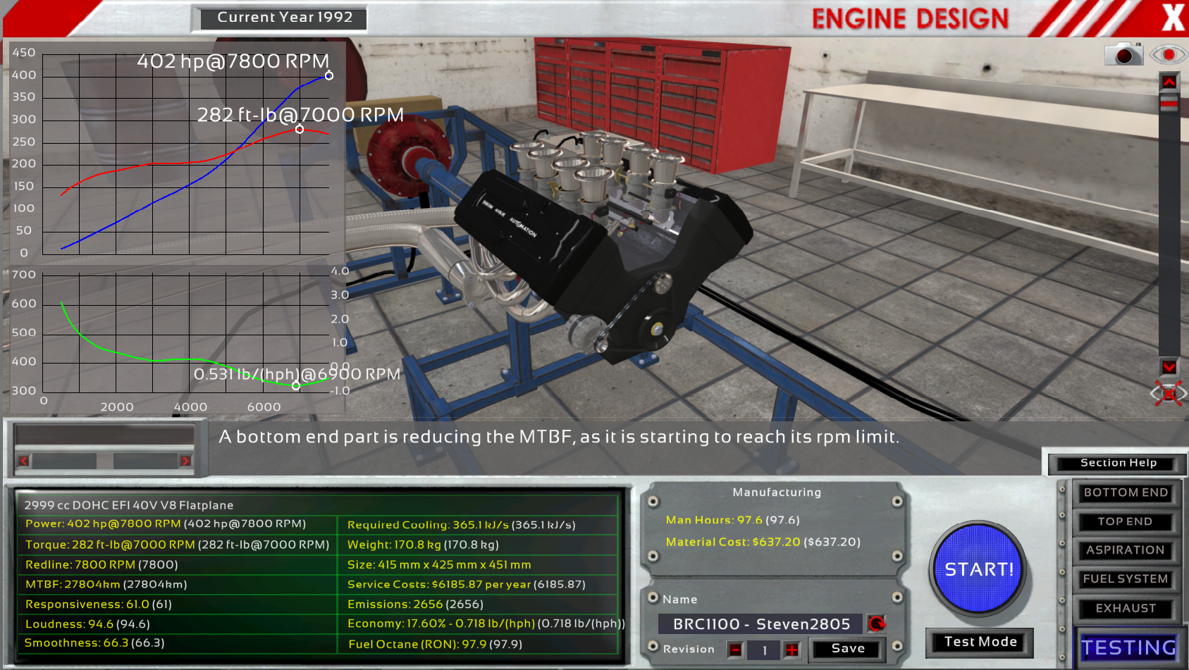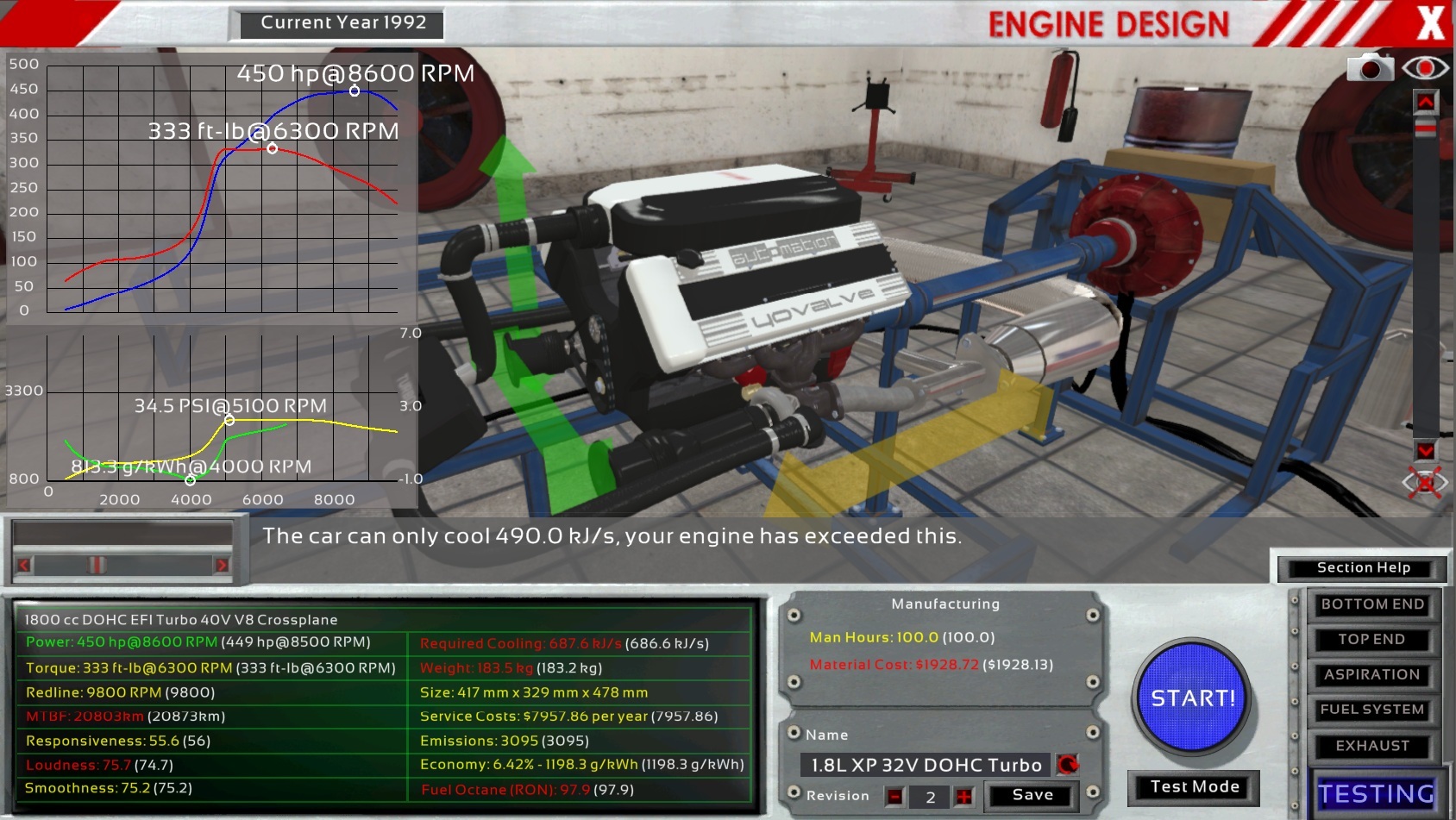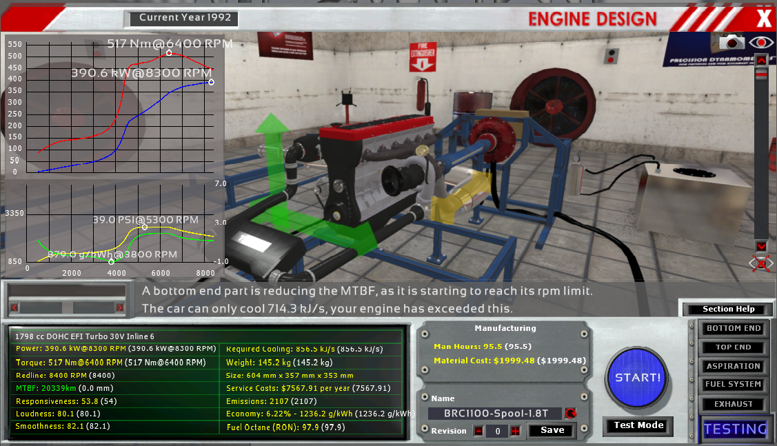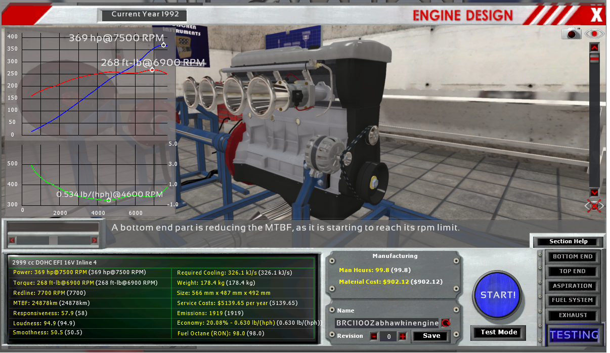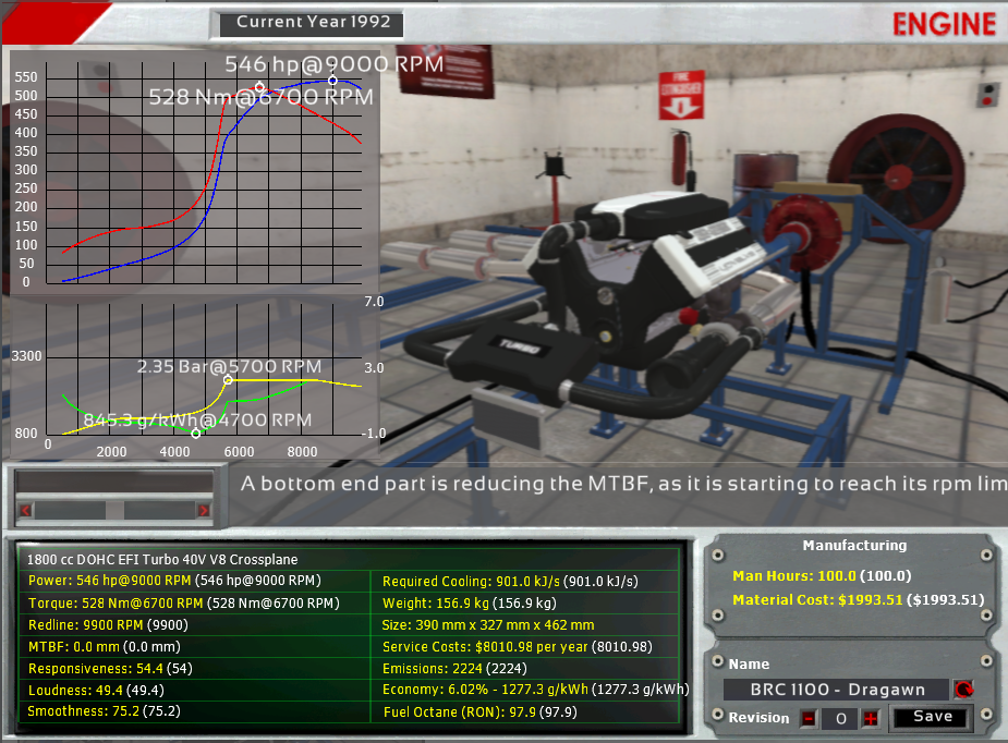 Very interesting engines indeed - I’ll be very interested to see how the turbo 6 or turbo 8 engines compare on the track. My contribution, focusing on drivability. This appeared to give the best times overall on a variety of slow and fast circuits. This is the engine I submitted however because of too many revisions to go through I was meant to submit another inline 6 with higher power and a similar powerband - I’ll organise my filenames better next time.
