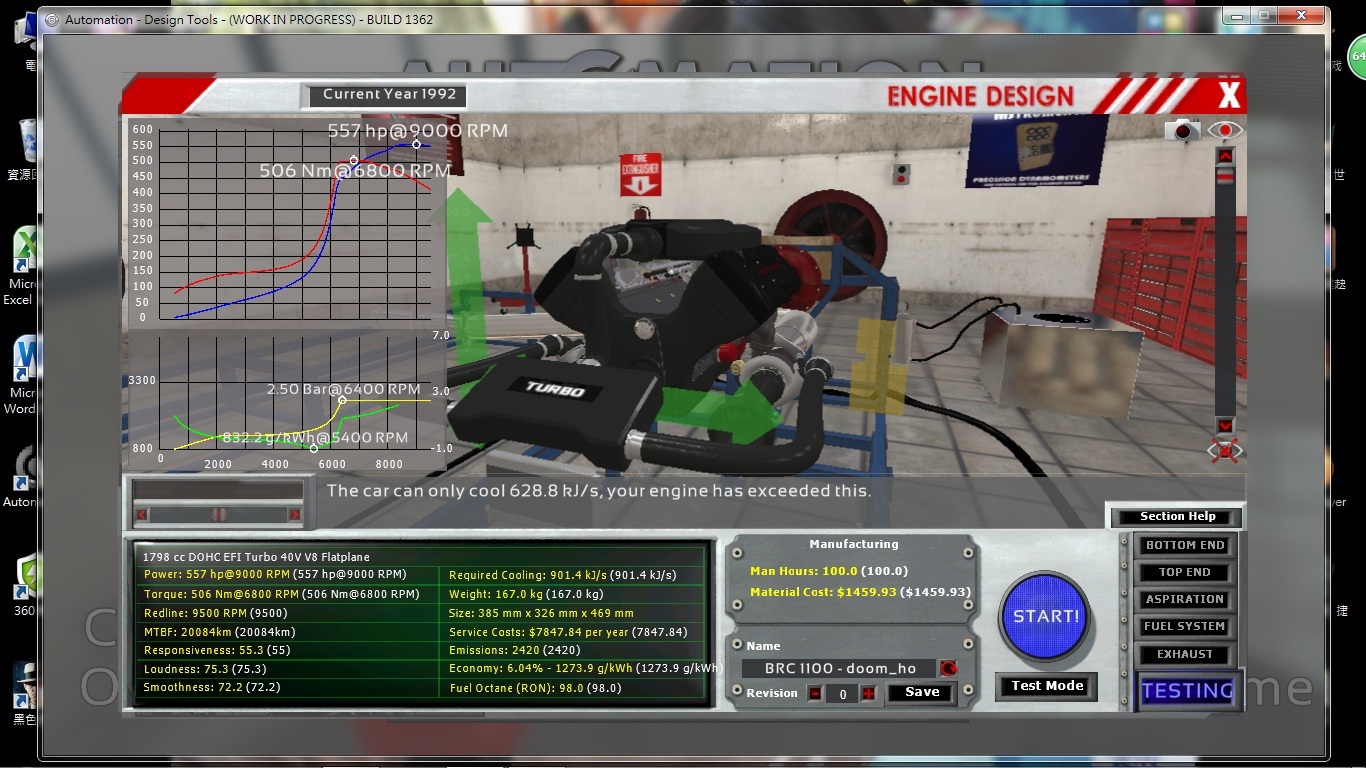 This is a prototype V8 I tested for my BRC 1100 car… Despite looking decent on paper, It just couldn’t match the I4 I posted above. It was like 9 seconds slower on some of the test tracks I tested my cars on.