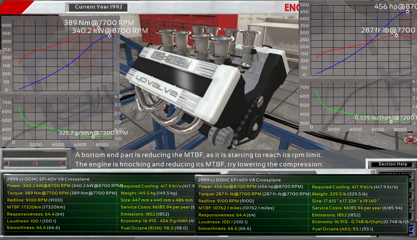 I opted to go with a very torque-y V8 with a flat powerband, just to hopefully make good use of the V8 power, whilst keeping some driveability.