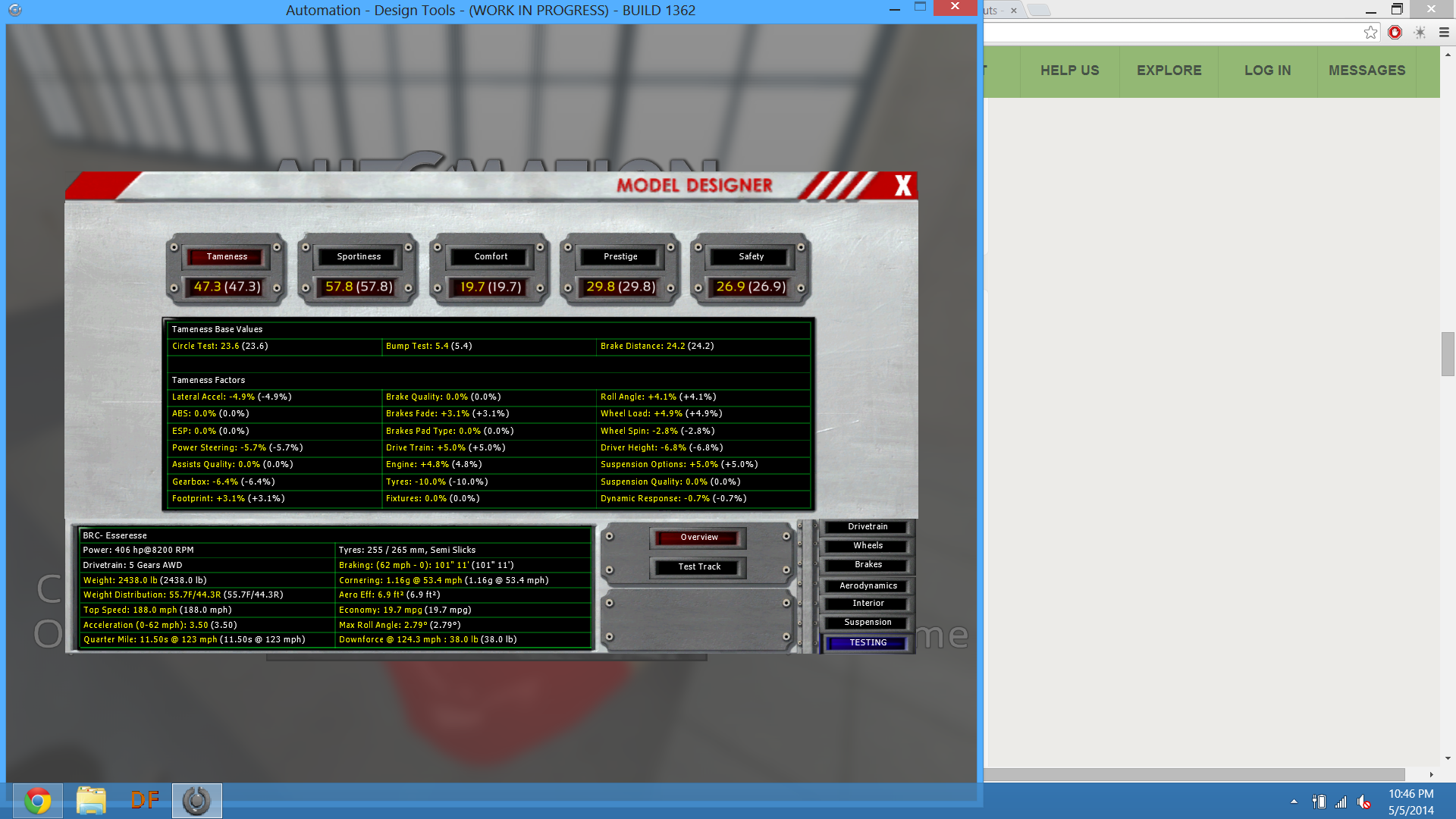 Send it to me and Ill take a look, but my understanding of tameness is how easy/hard is it to control your car. Higher means easier to control, possibly more forgiving.