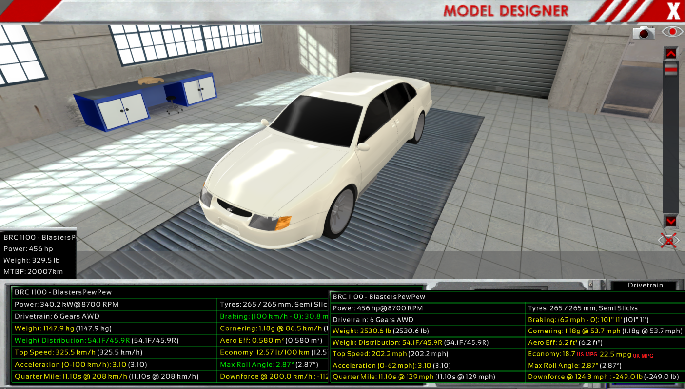 EDIT: Lol, I just realized it has 450, not 550HP… no wonder it was so slow… Hmm, I must have done something wrong in the design to get such weak power.