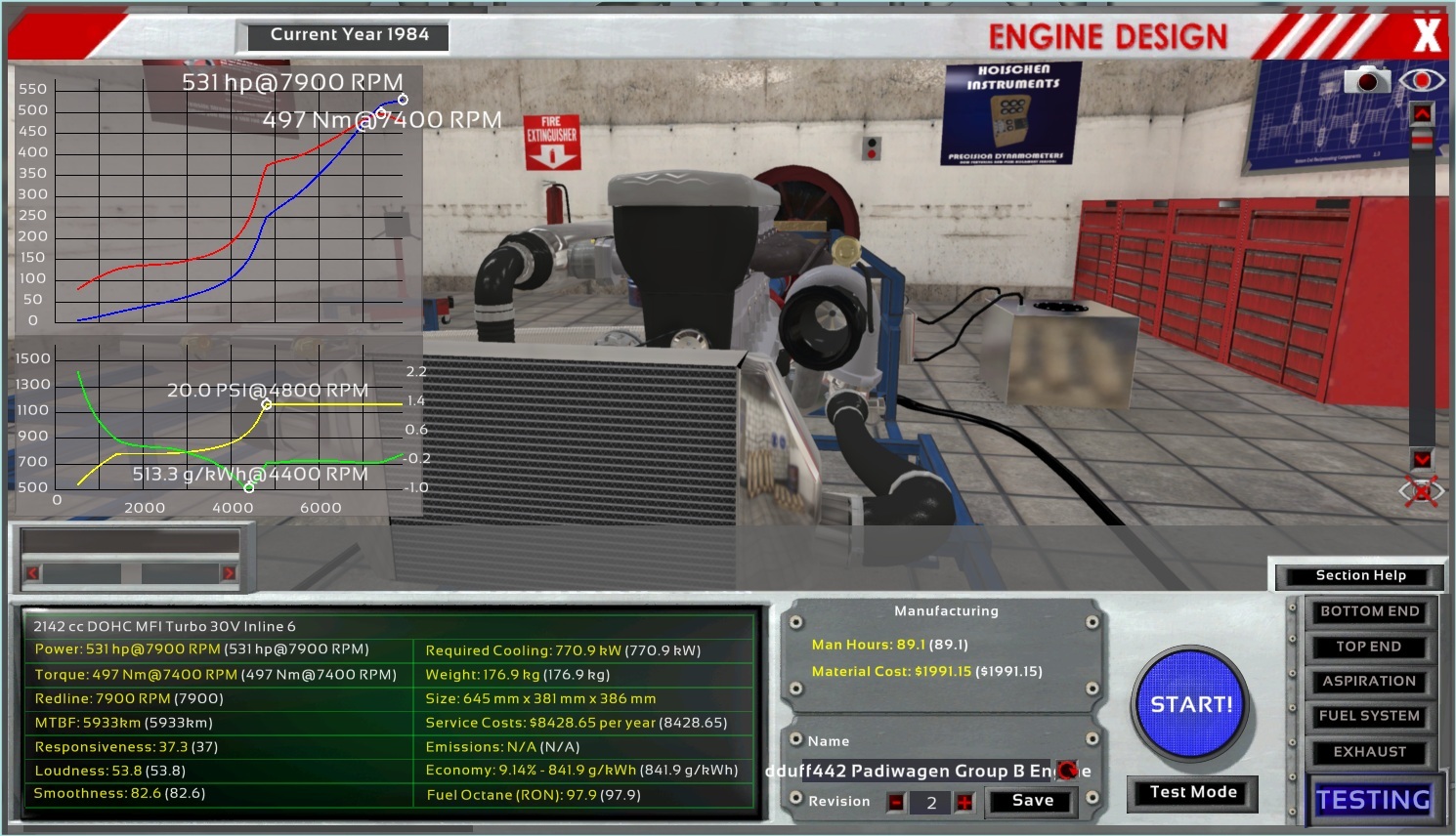 Another I-6 turbo. Although the power band is fairly wide, I should have let it rev higher to widen it further and needed to flatten the torque curve a little more.