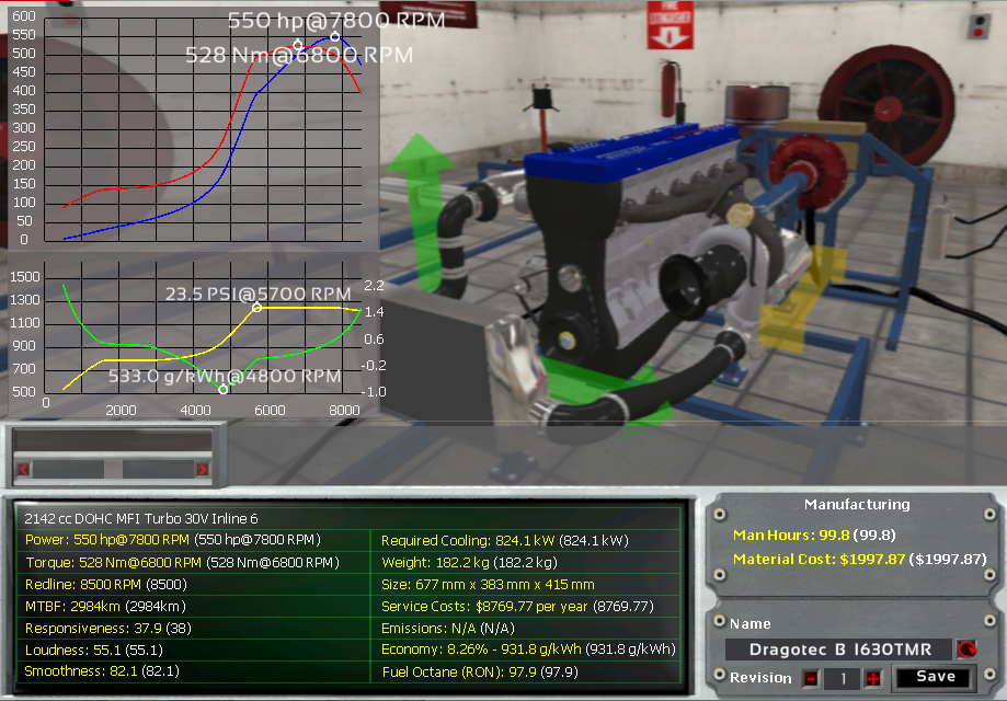 I chose single throttle MPFI to save some Man Hours which I then could put into higher quality parts. Another engine I considered to use was a 652 hp (486 kW) V8 Turbo, but that would have been totally undriveable.