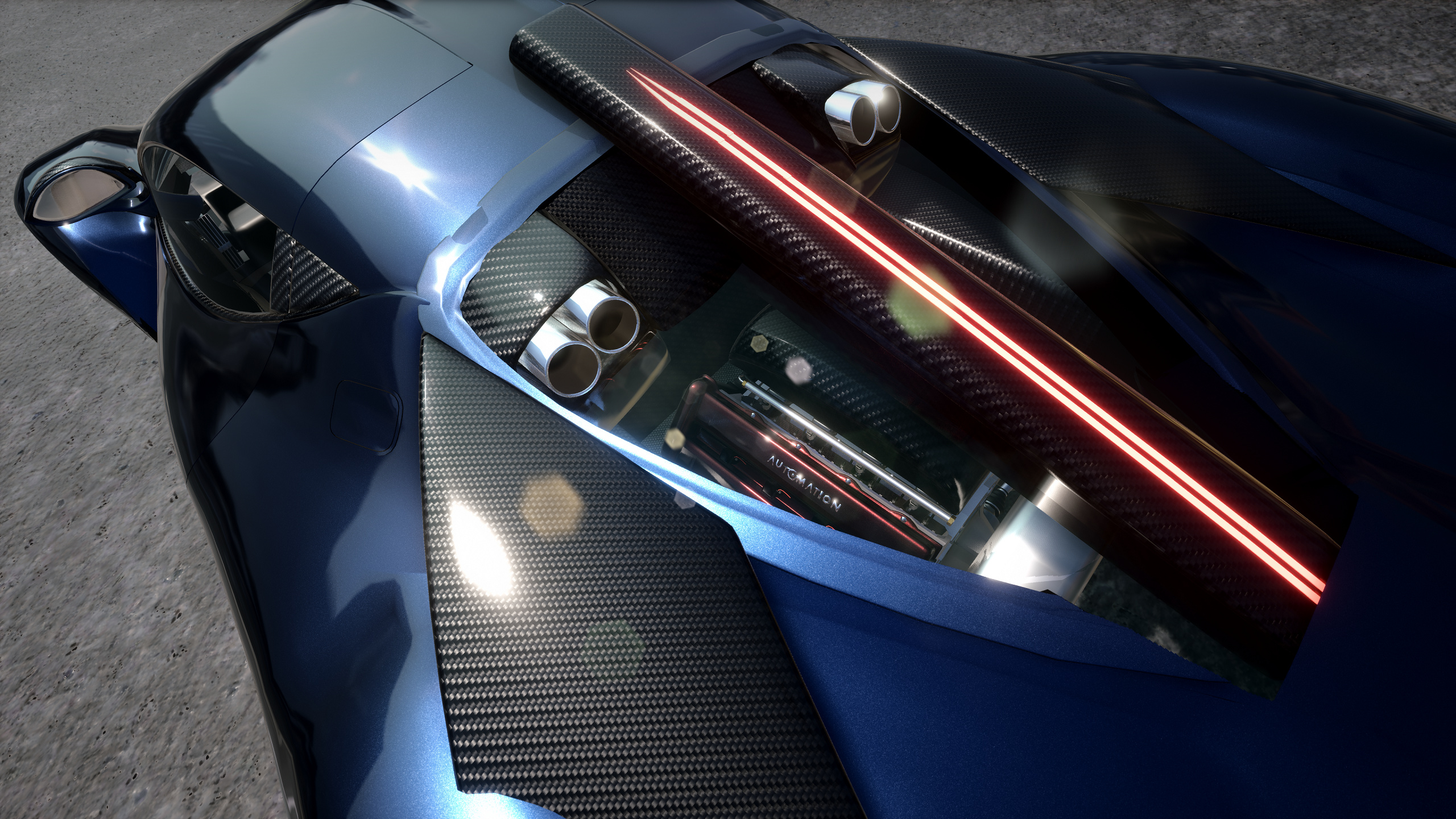 A 5L SOHC N/A V12 with mechanical injection, making 300hp. I Made it for a 1970s GT contest but couldn’t upload it because the body itself was too impractical