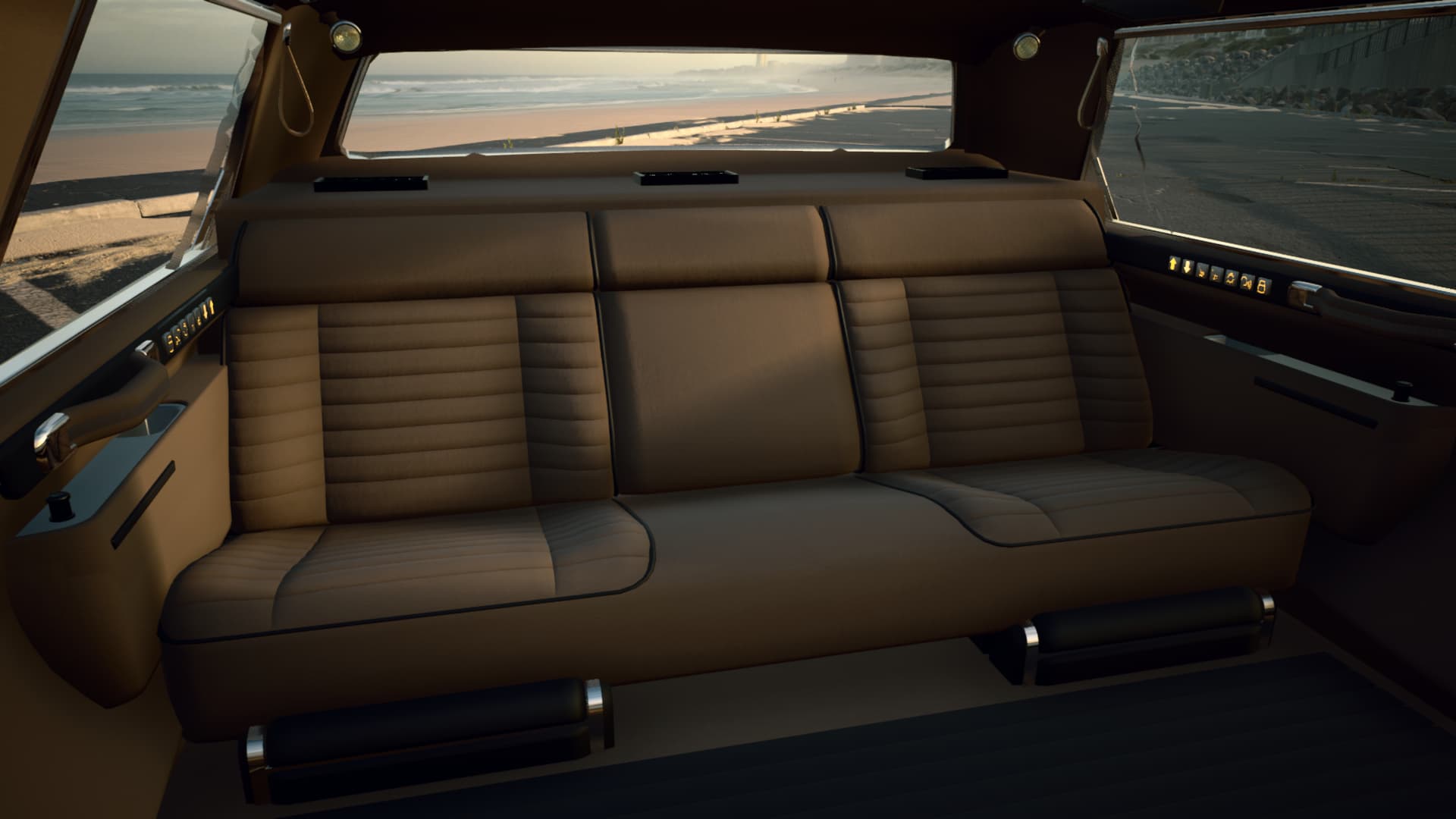 Inside, supple upholstery wraps you in quiet splendor. Genuine wood trim, soft lighting, and craftsmanship without compromise.