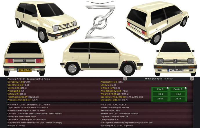 After the launch of the Zap! the company economical situation allowed it to breathe again. The results were good and the technology debuted on the ZAP! was downscaled to cover the supermini segment, a segment that the Znopresk didn’t covered since the late 50’s.