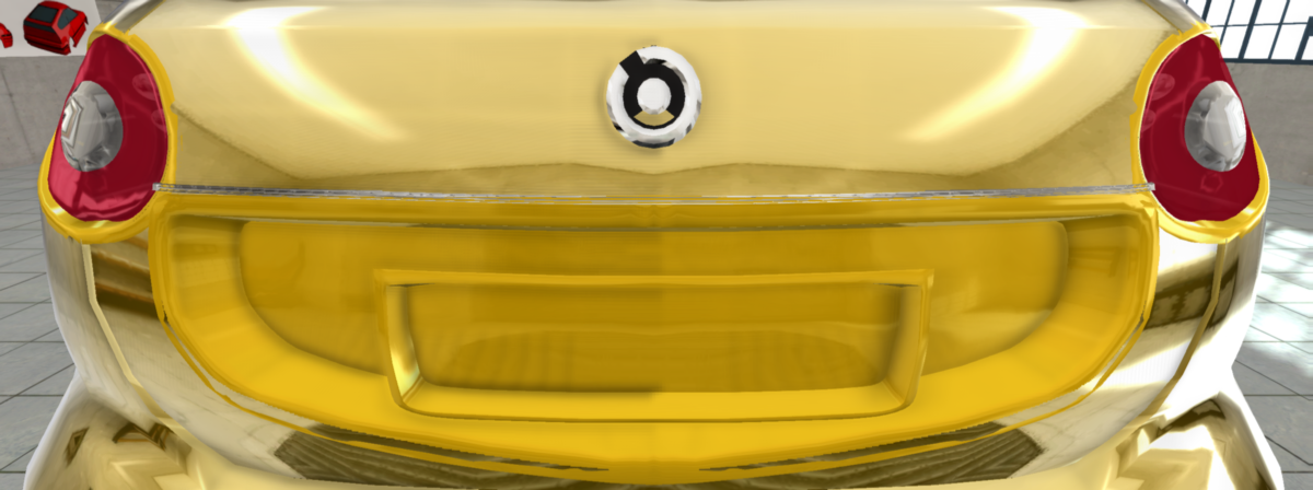 I found another bug. When you place a grille/vent on the back of the car so that the grille/vent crosses the vertical line between the tail and the side panel, you get some funky spikes: