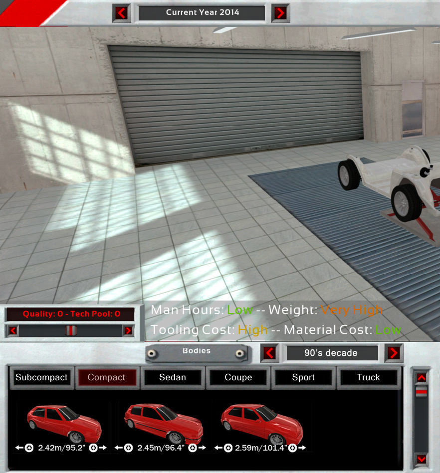 Frankly i don’t like the decade filter at all, but I was also thinking in some possible game mechanic, let’s say a feasible penalization (safety,prestige,etc) if you create a car in 1990 with a body from 1970 (PS-edit in the first post).