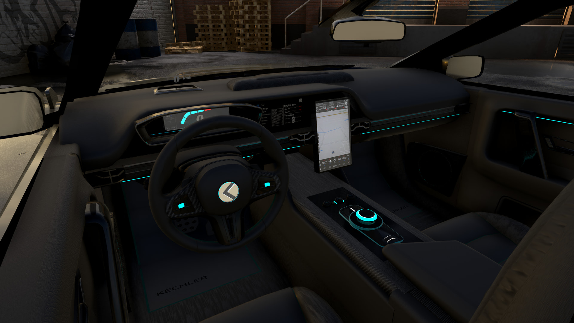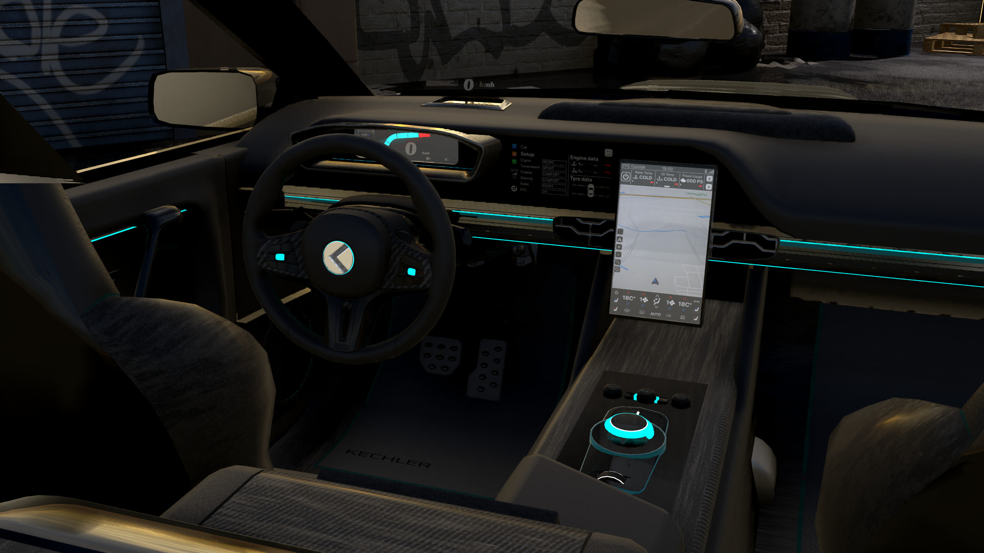 The P47 is standard equped with teal blue ambient lights, a digital dashboard and a projected speedometer.