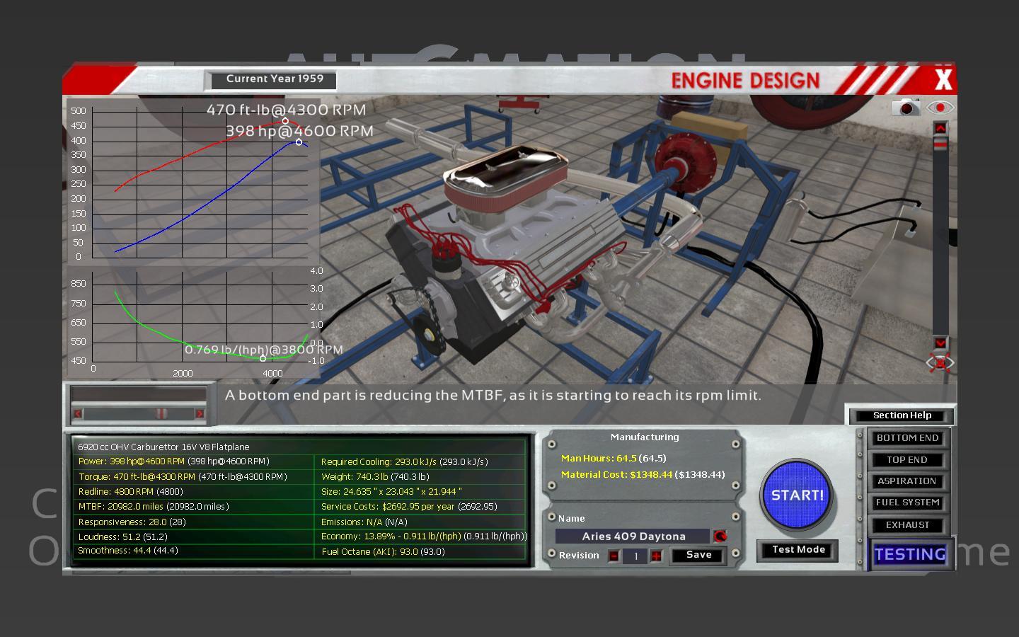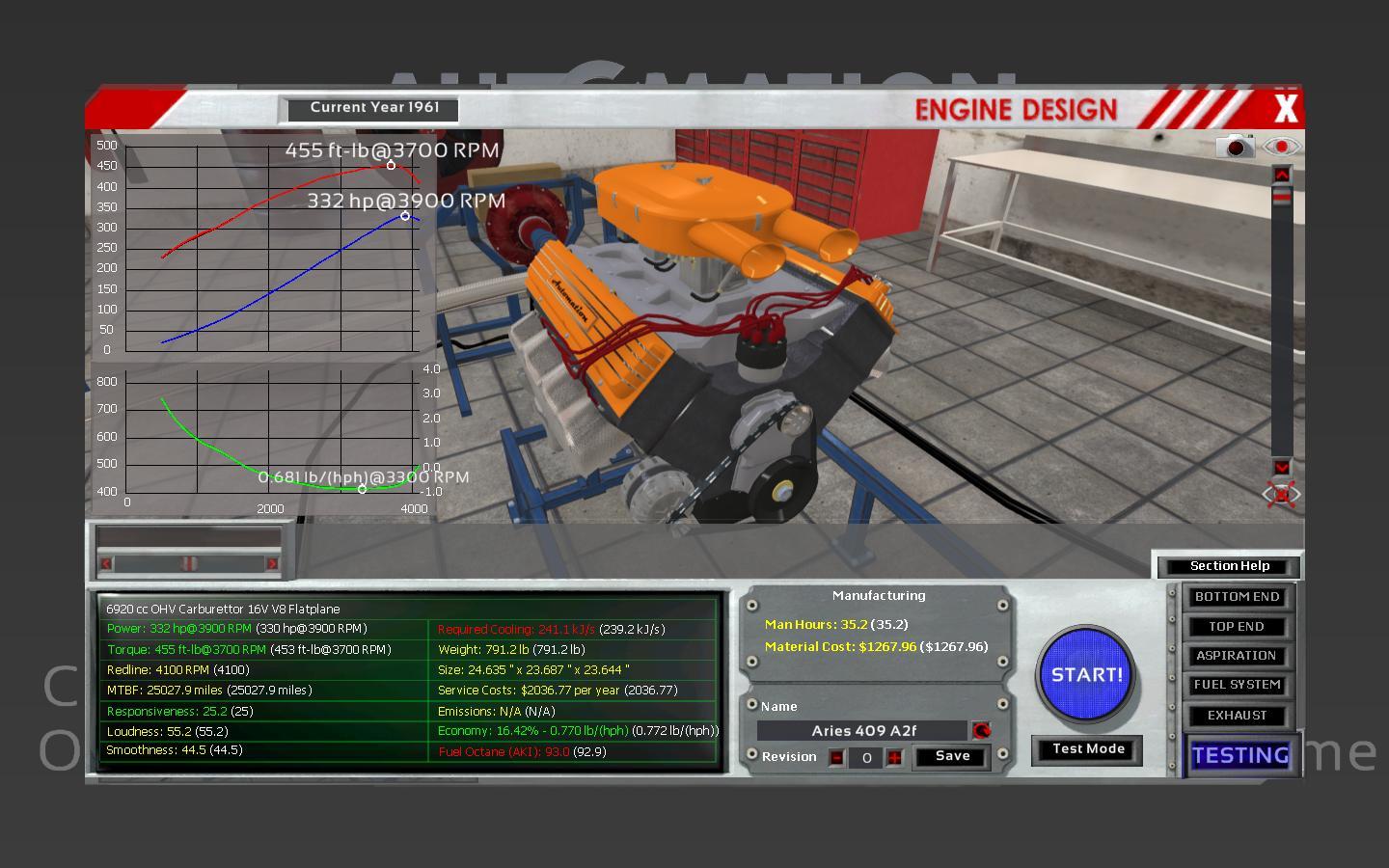 Next update should be tonight, trying to figure out a set of early muscle car/pony car engines that fit with my company’s ideas.