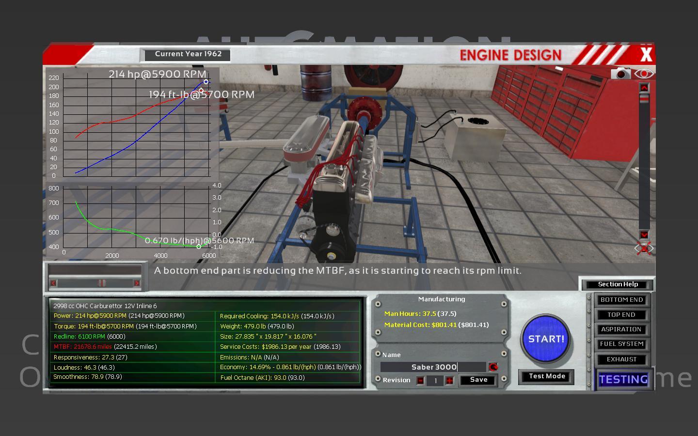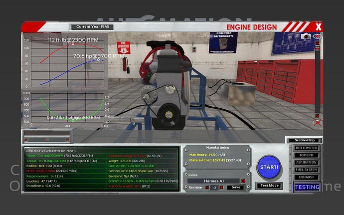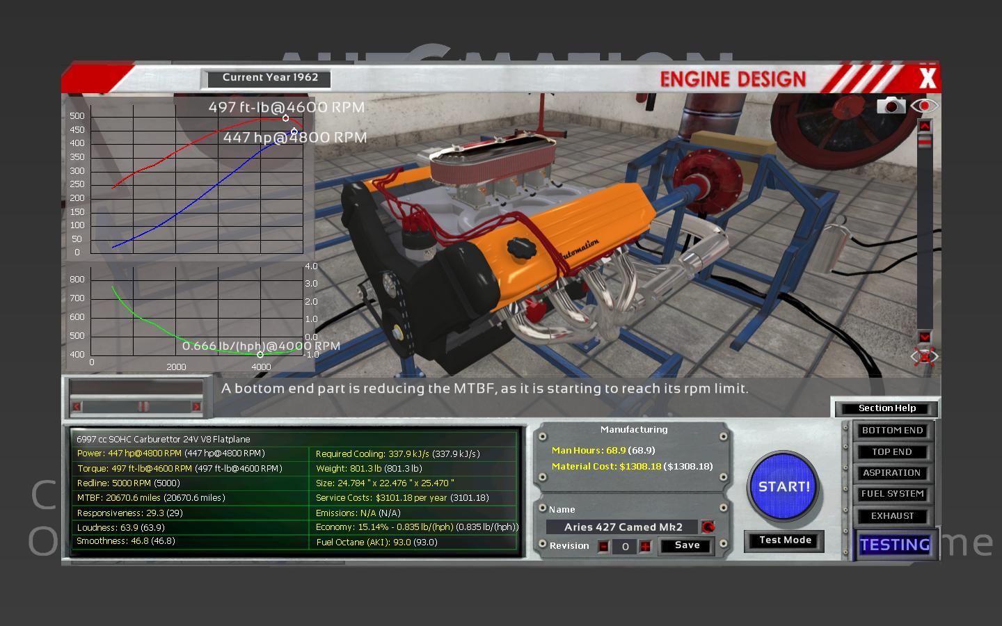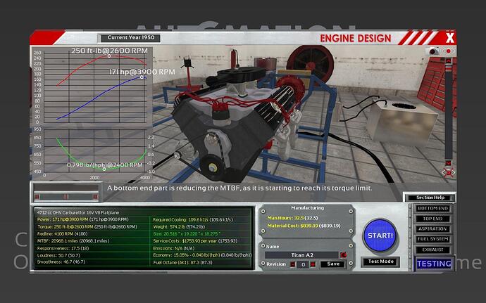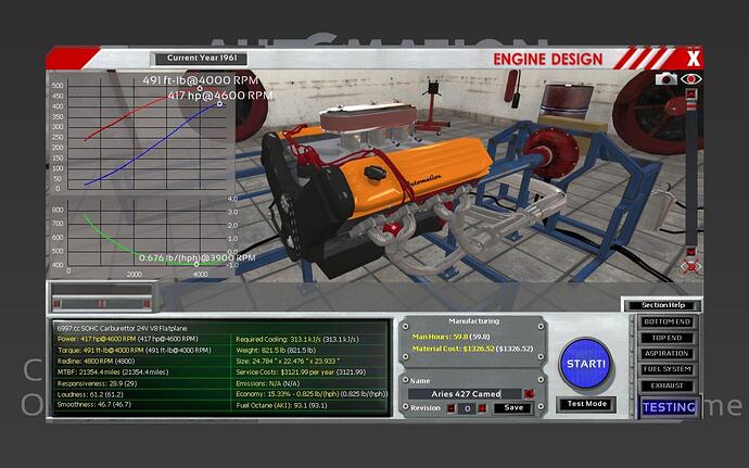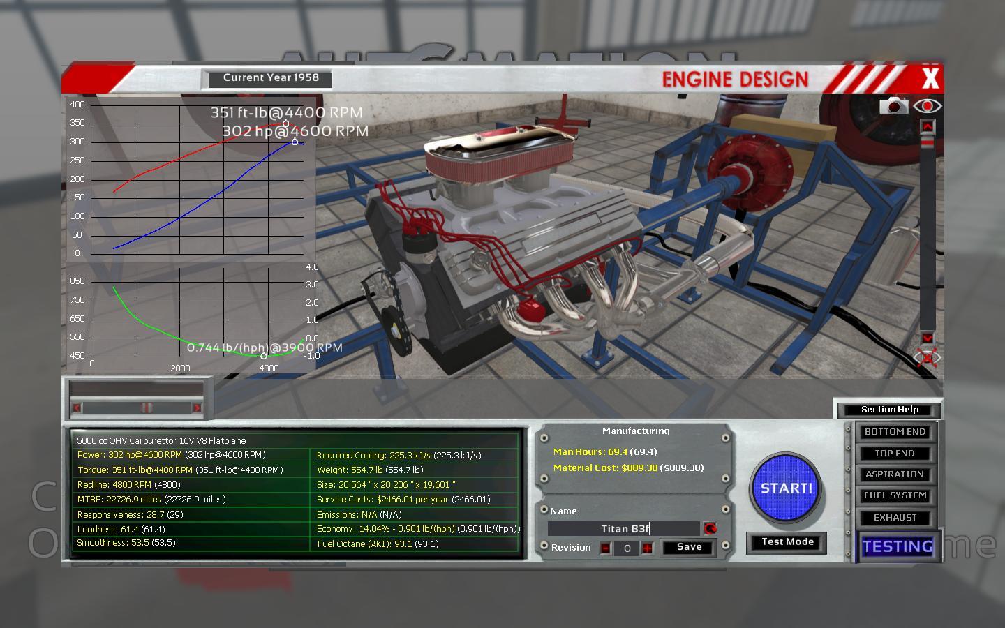 Welcome to 1958 and big news From the engineering staff at Centauri’s Advanced motor works shed. The aging Titan engine is no longer able to meet the performance demands of you our customers, and so this year we retire out workhorse v8 and usher in the two new and far more flexible lines to replace it, the small block Vulcans and the big block Aries. Before unveiling those however we are doing a final limited run of the high performance Titan B series as a send off in style to a faithful breed.