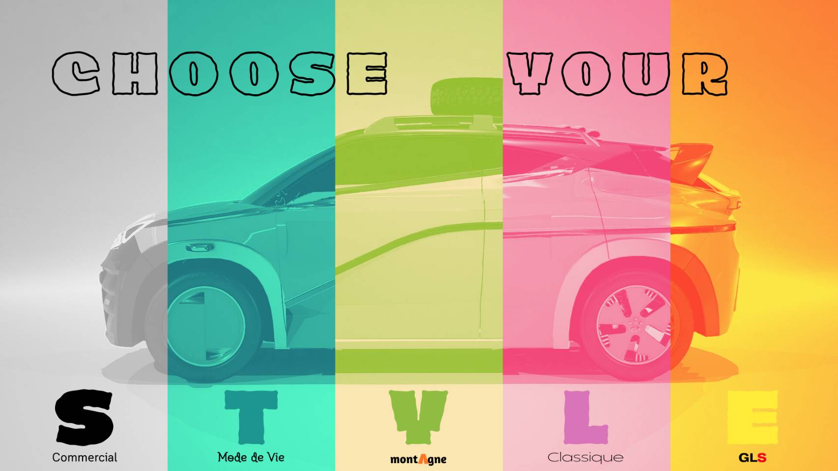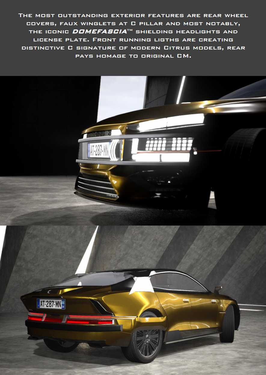 The Citrus N.EV.U (Nouvelle Ère de Vie Urbaine: New Era of Urban Life) is designed to preview the future of Citrus, while also retaining their quirky personalities from the past, and demonstrate how cars can be integrated into everyone’s everyday life. The idea behind the N.EV.U is to create a small run-around car that anyone can tailor to fit their desire. As you can see, there are 5 versions: Commercial, Mode de Vie (Lifestyle), montAgne (Mountain), Classique (Classic) and GLS.