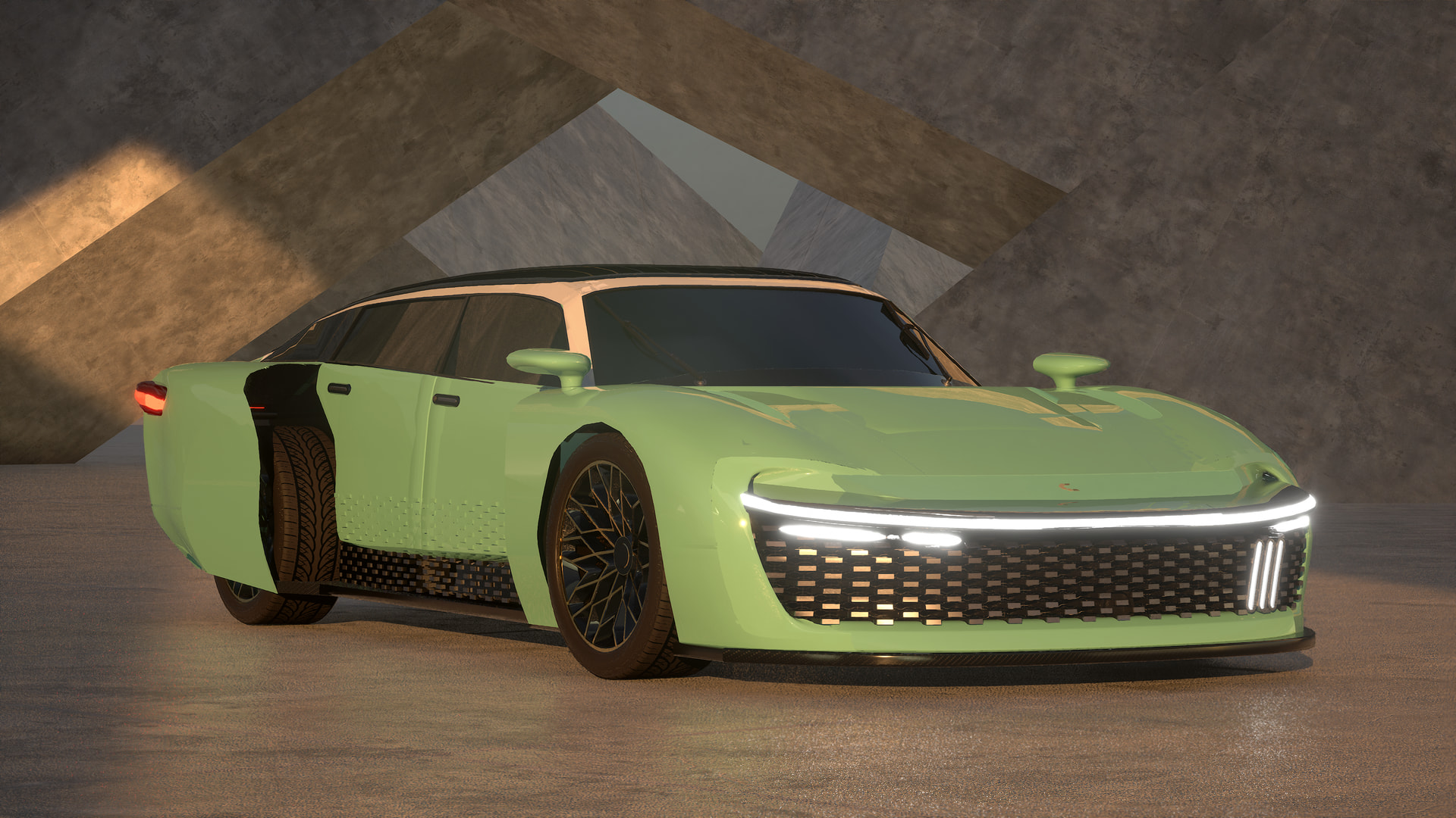 Designed by Looq in our Beijing studio, the Arkadium concept is a new B-segment sized EV representing the future of Citrus as a brand, with a focus on efficiency and aerodynamics, and maintaining select Citrus design cues, like purposeful asymmetry.