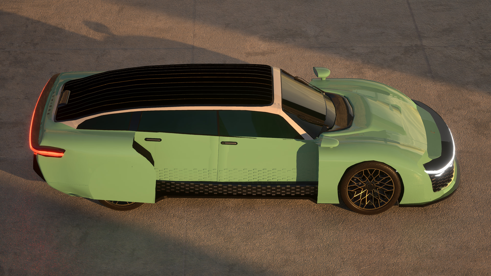 The LUMIERE’s body lines are made with precision and ingenuity for aerodynamics, designed for lightness, minimum material usage, and minimum air resistance, all contributing to efficiency. At the same time, the rear quarter panels are designed to provide downforce at high speeds without spoilers or wings. All this is done while preserving interior space.