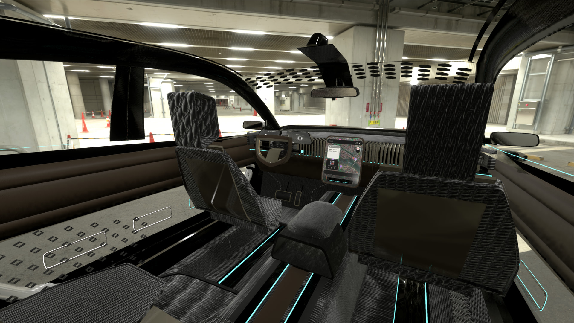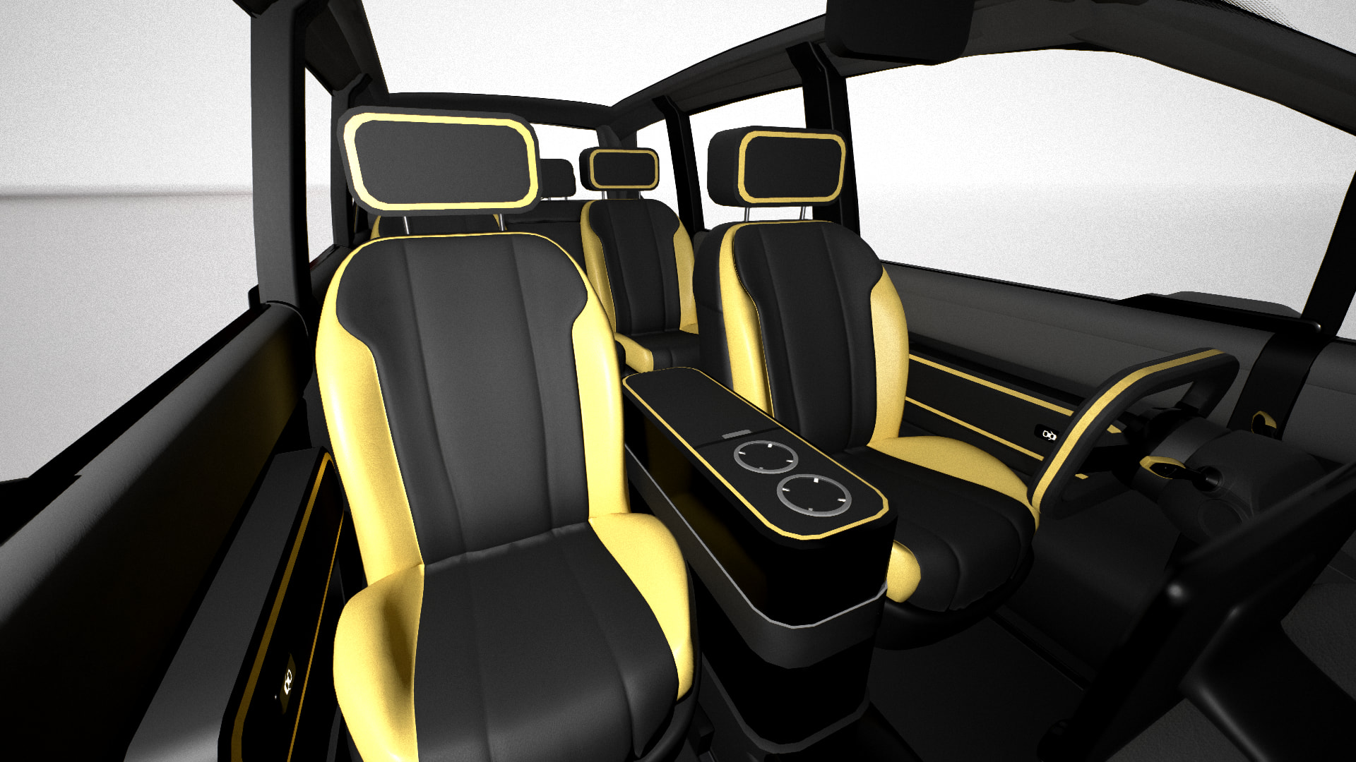 A lack of natural light will not be an issue when driving the TEMA. The glass roof gives a beautiful panoramic view from the top and the unique windows in the doors give the back seat passengers an almost 180° viewing field of what's going on outside. If you like to enjoy more privacy, the windows can be darkened with a simple push of a button.