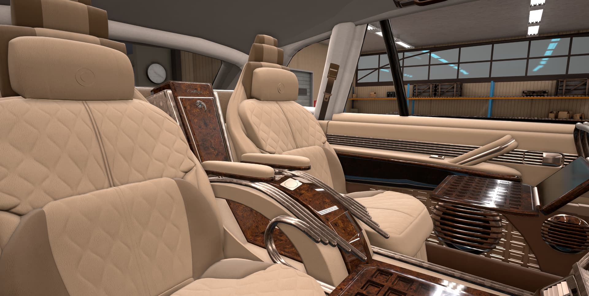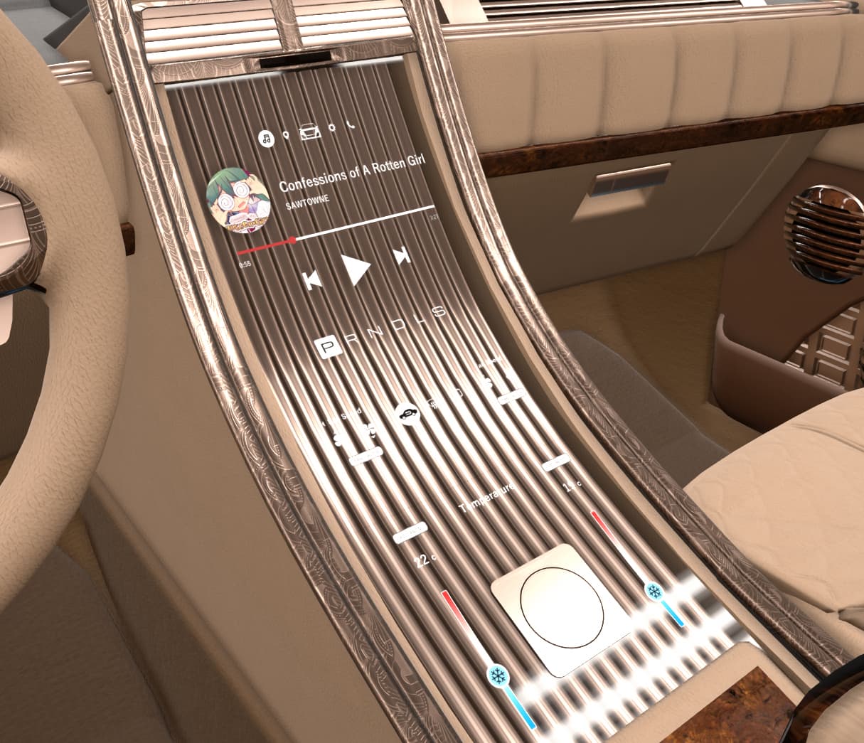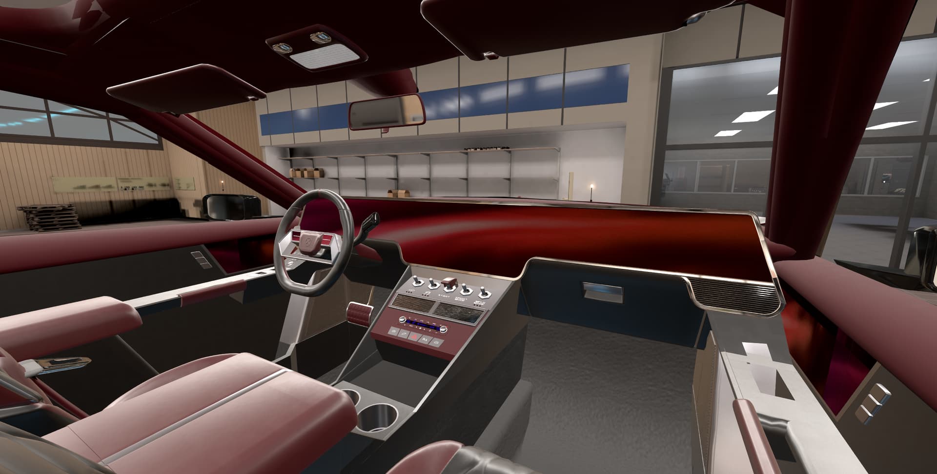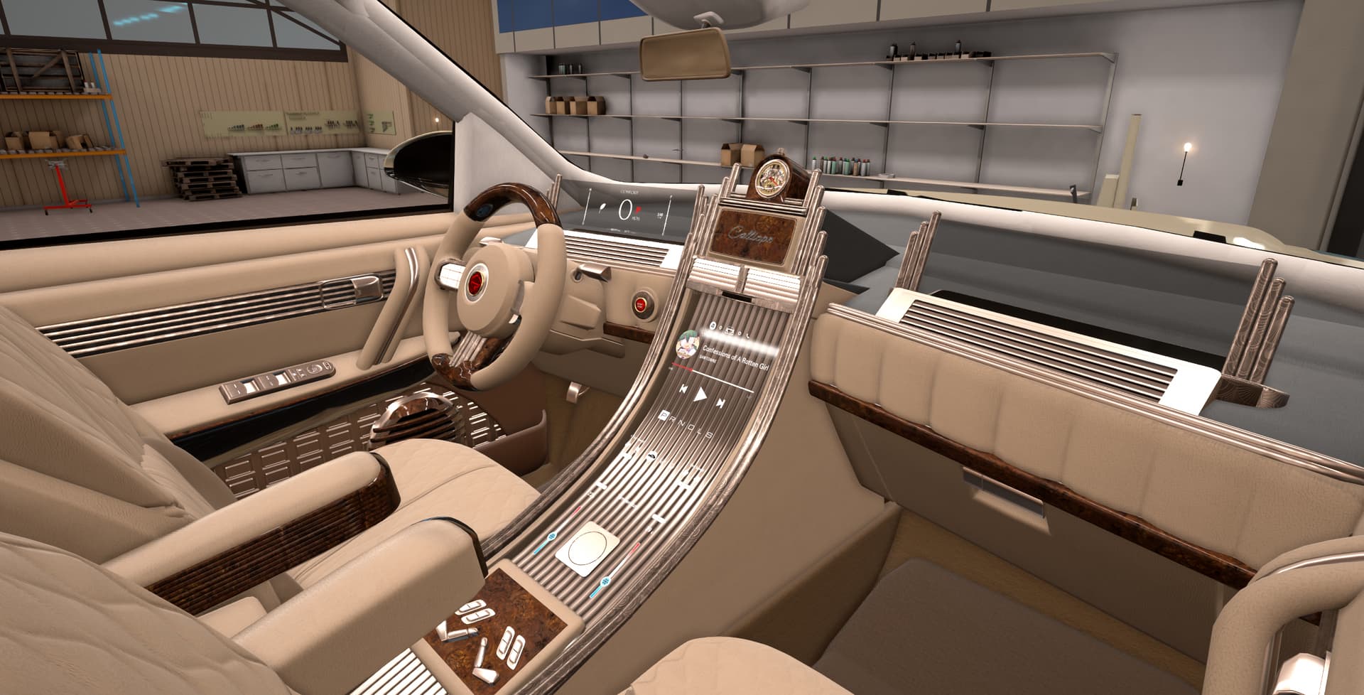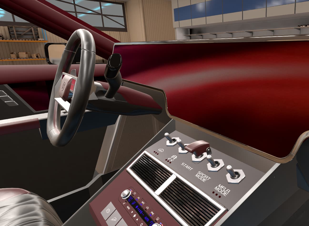 With some elements that seem too retro for the likely taste of myself and the fictional customer, such as the violently 80’s steering wheel, chrome bezel around the screen, and those swtichgears. I’m sure some people would really dig them though.