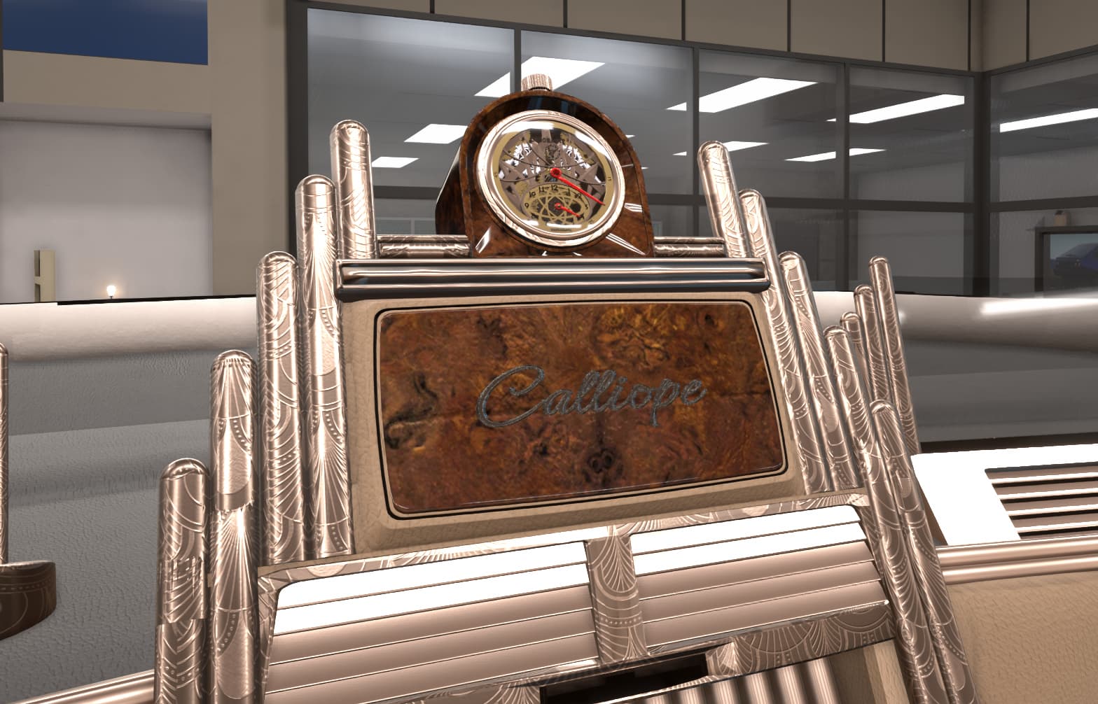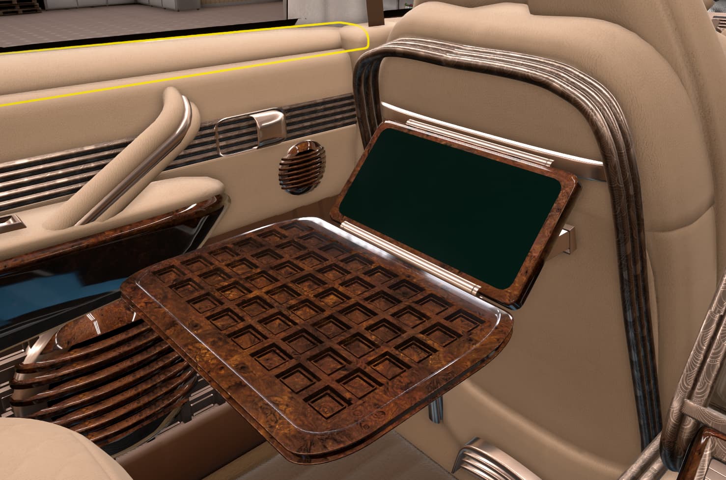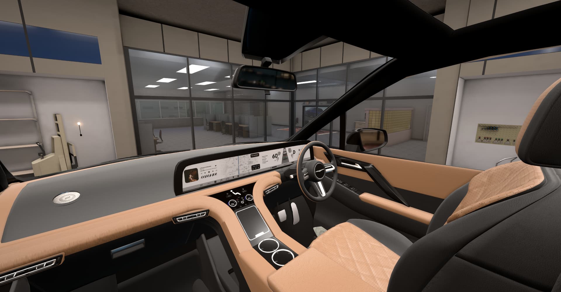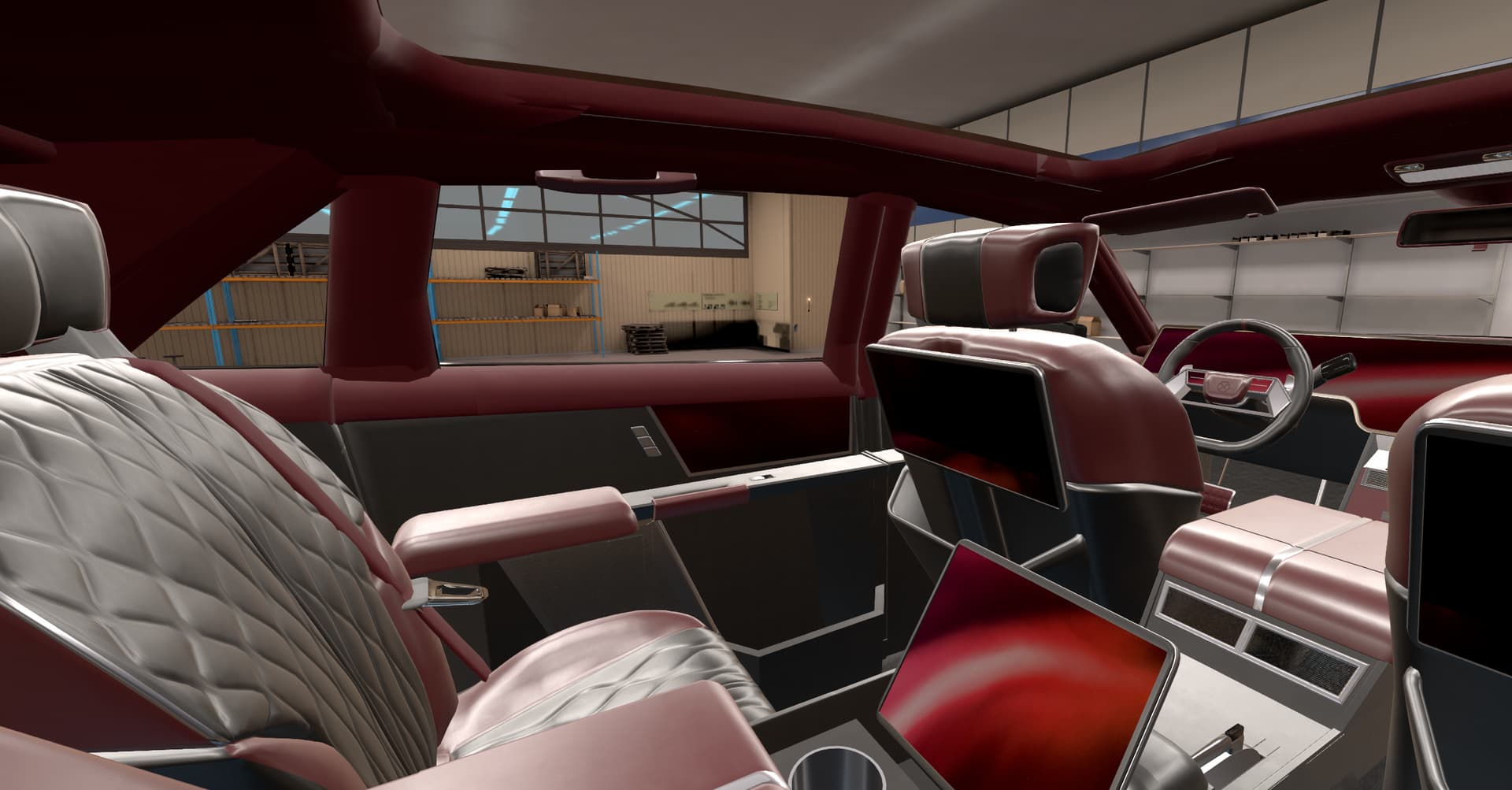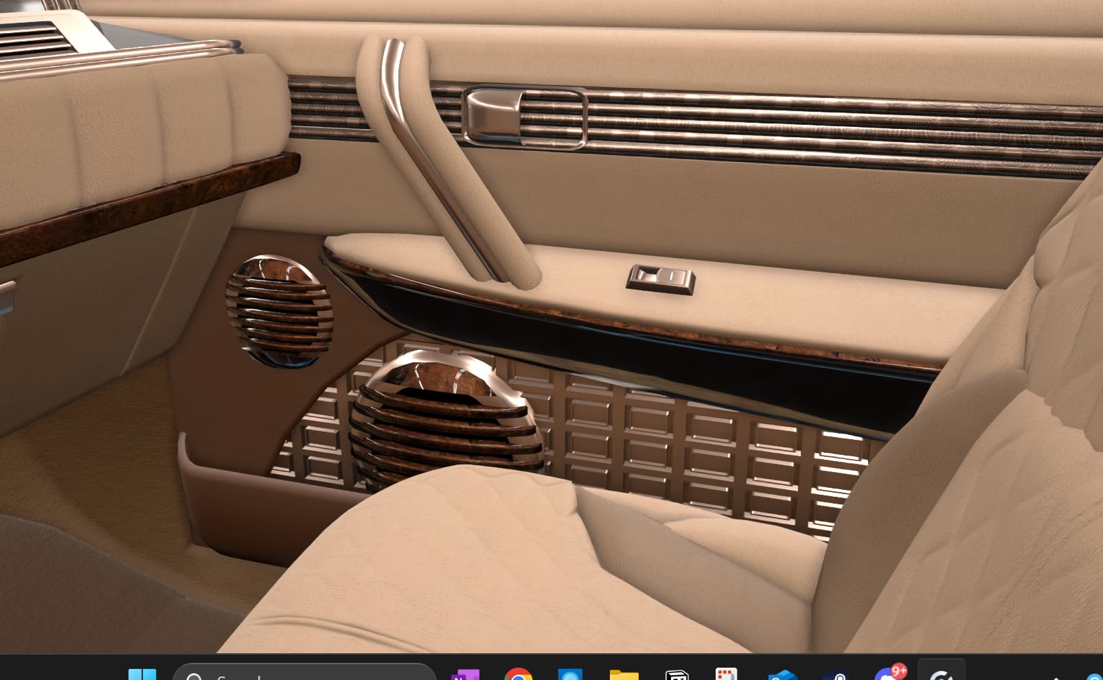 With some elements that seem too retro for the likely taste of myself and the fictional customer, such as the violently 80’s steering wheel, chrome bezel around the screen, and those swtichgears. I’m sure some people would really dig them though.